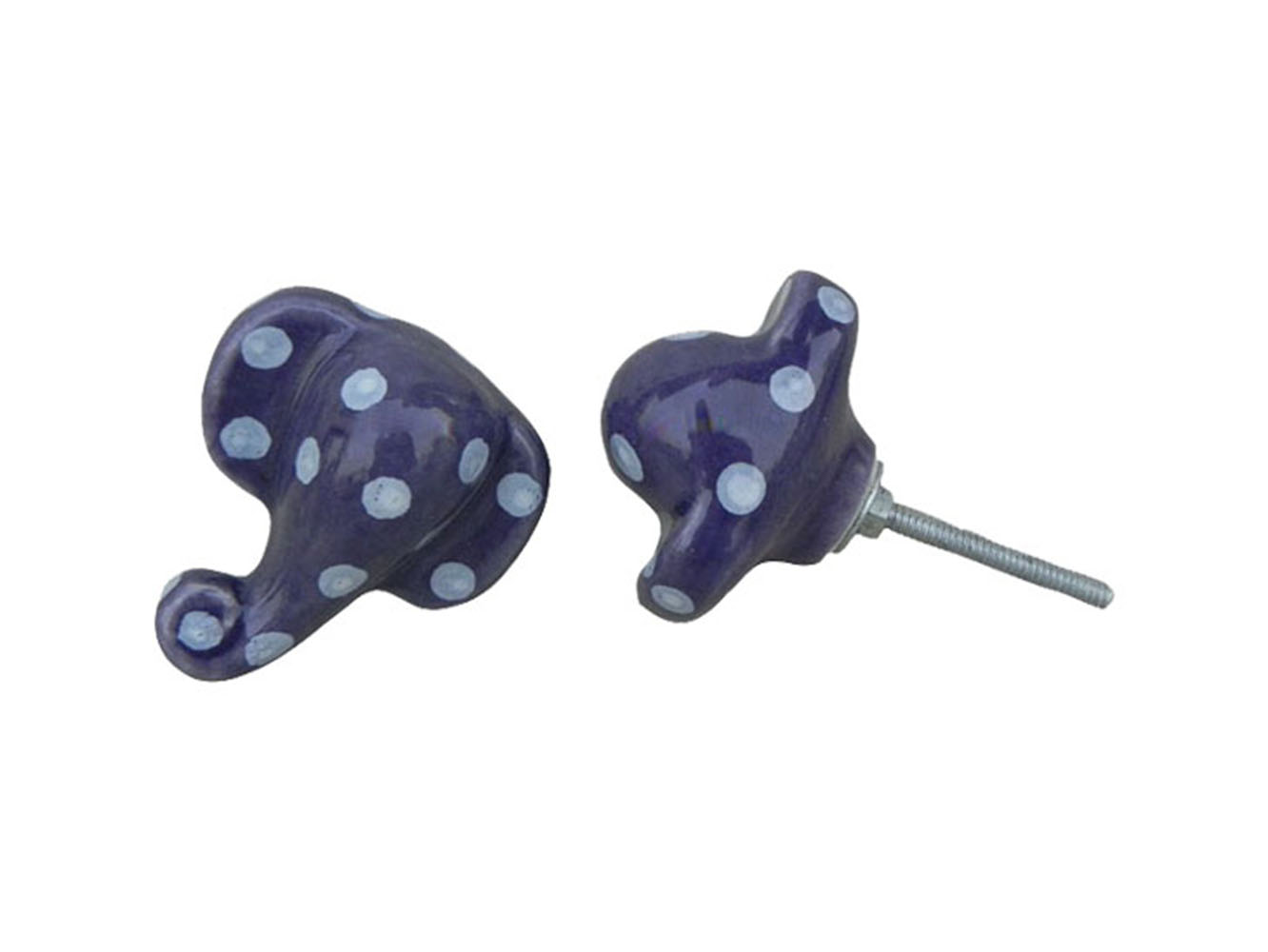 This cute Purple Polka Elephant Face Knob can be used in kitchen cabinets, bathrooms, kids rooms and various home furnishings. This modern door handle and knob requires no additional hardware . Bolt, washer, nut included for mounting.