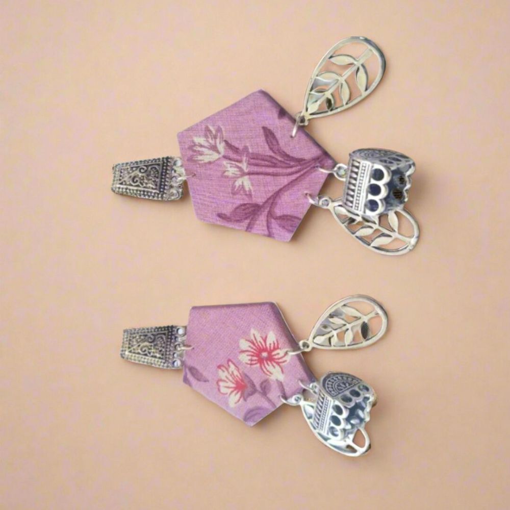The Purple Printed Floral Earrings with Silver Charm Bottom celebrate color, print, and motion in a refined handcrafted form. Crafted on a fabric base, the rich purple surface is enlivened with multicolour floral motifs that feel expressive and artistic. A silver-toned charm at the bottom adds subtle movement and shimmer, creating a graceful finish. Lightweight and balanced, these earrings are designed to elevate everyday ethnic looks and festive ensembles alike.