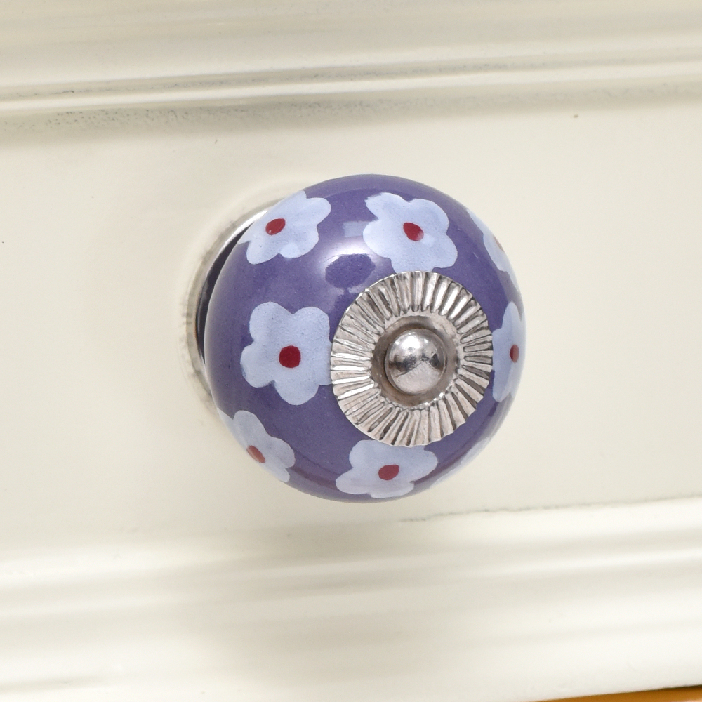 Purple Tiny Flower Knob. Ideal for kitchen cabinets, kitchen drawers, dining room, bed room, chest drawers, dressing tables, almirah