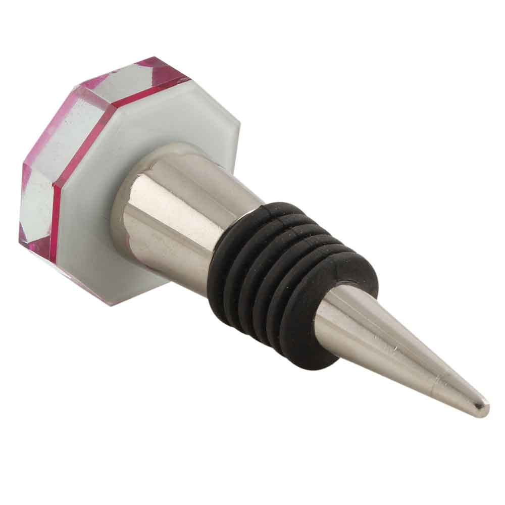Queen Pink Flat Octagon Dresser Glass Wine Stopper Online (2). Zinc Alloy Wine Bottle Stopper with Attractive Jute Bag Packaging.