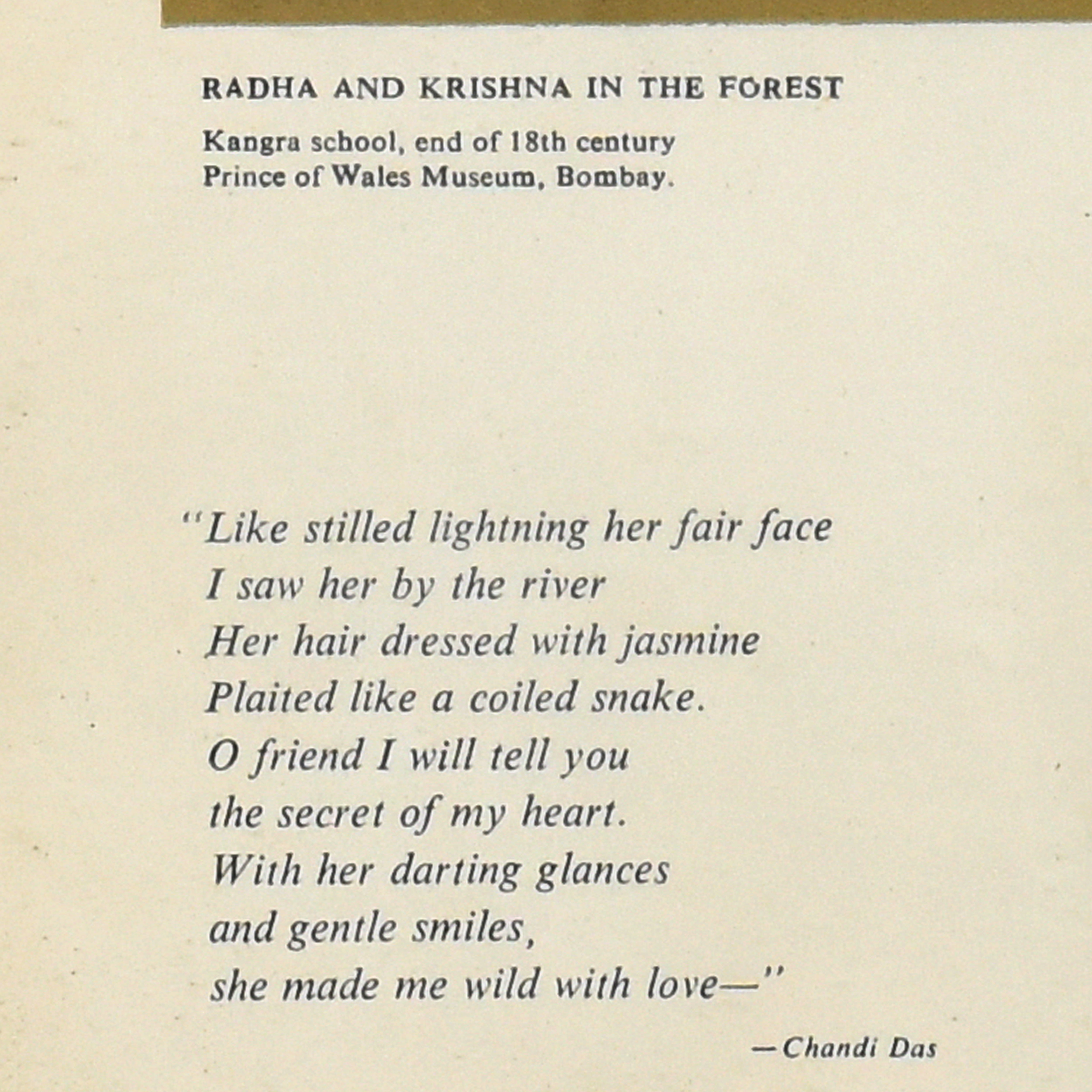 Below the artwork is a soul-stirring poem by Chandidas that perfectly complements the image: