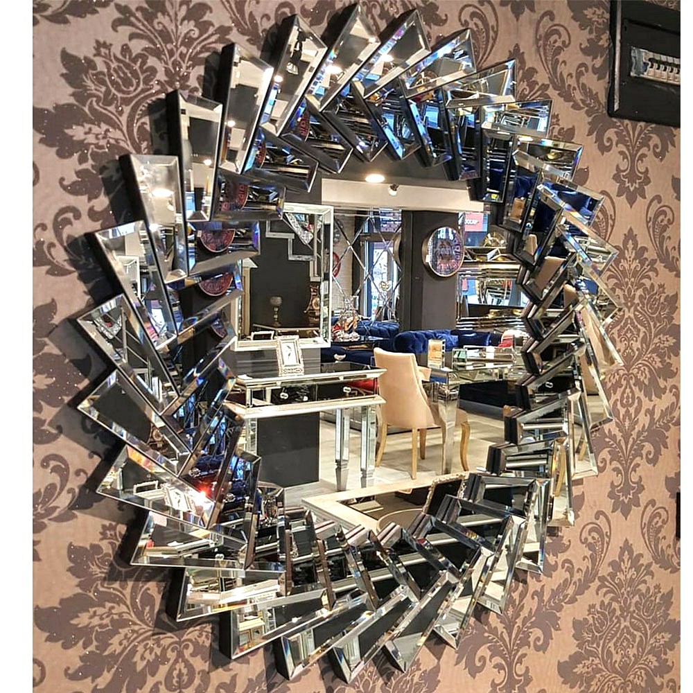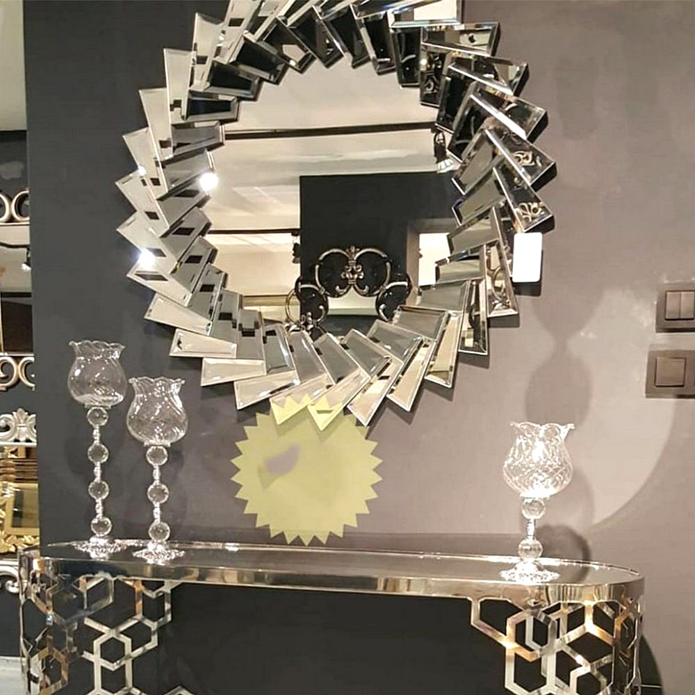 - Unique spiral frame with angled mirrored facets