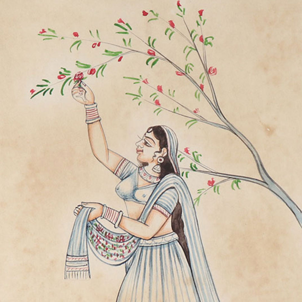 With all the subtlety of a Ragini, it is a stunning watercolor painting. A painting's grandeur and color effectively convey the subject's reflective attitude. The Ragini Paintings are a group of illustrative paintings from mediaeval India that are based on the Ragini, also known as the "Garland of Ragas," and that show different Ragas, or musical nodes, from India. They serve as a classic illustration of how art, poetry, and classical music were combined in mediaeval India. Not only the Ragas but also their wives are shown in the paintings (raginis).