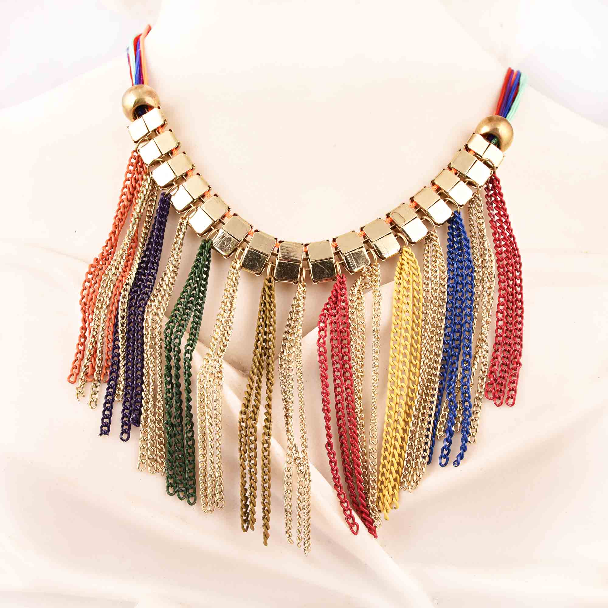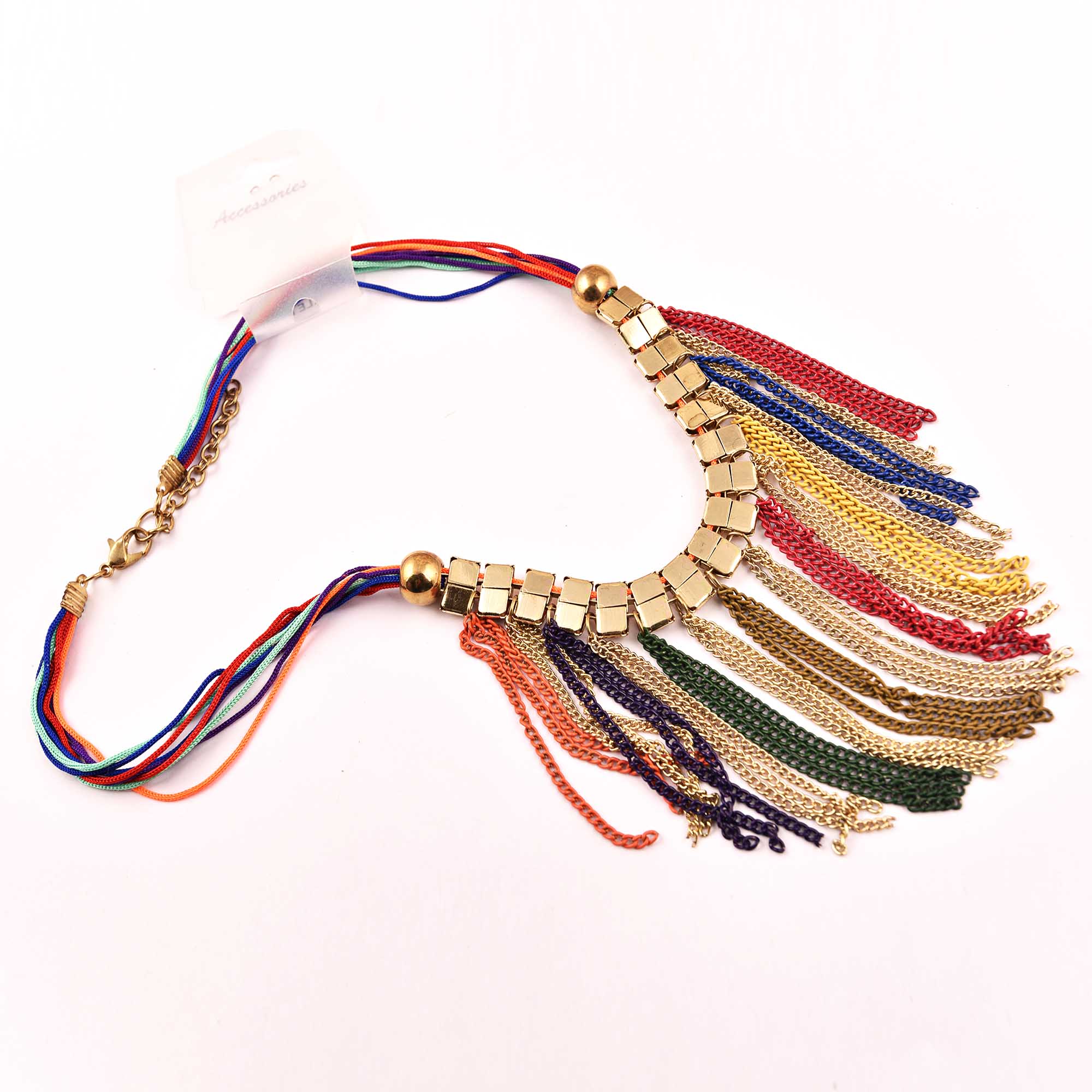Rainbow Tassel Delight Necklace New Beautiful Jewellery. Tassles In Colorful Seed Beads with Brass Necklace.
