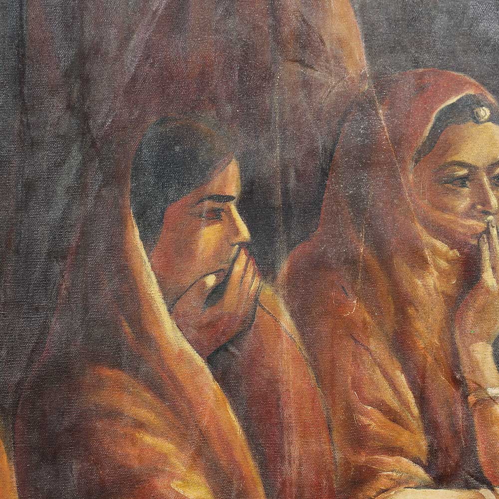 These elegant wall paintings of four Rajasthani women sitting in a dark chamber will add to the charm of your home. These paintings will make you cheerful, charming, and create a relaxing atmosphere in your home.
