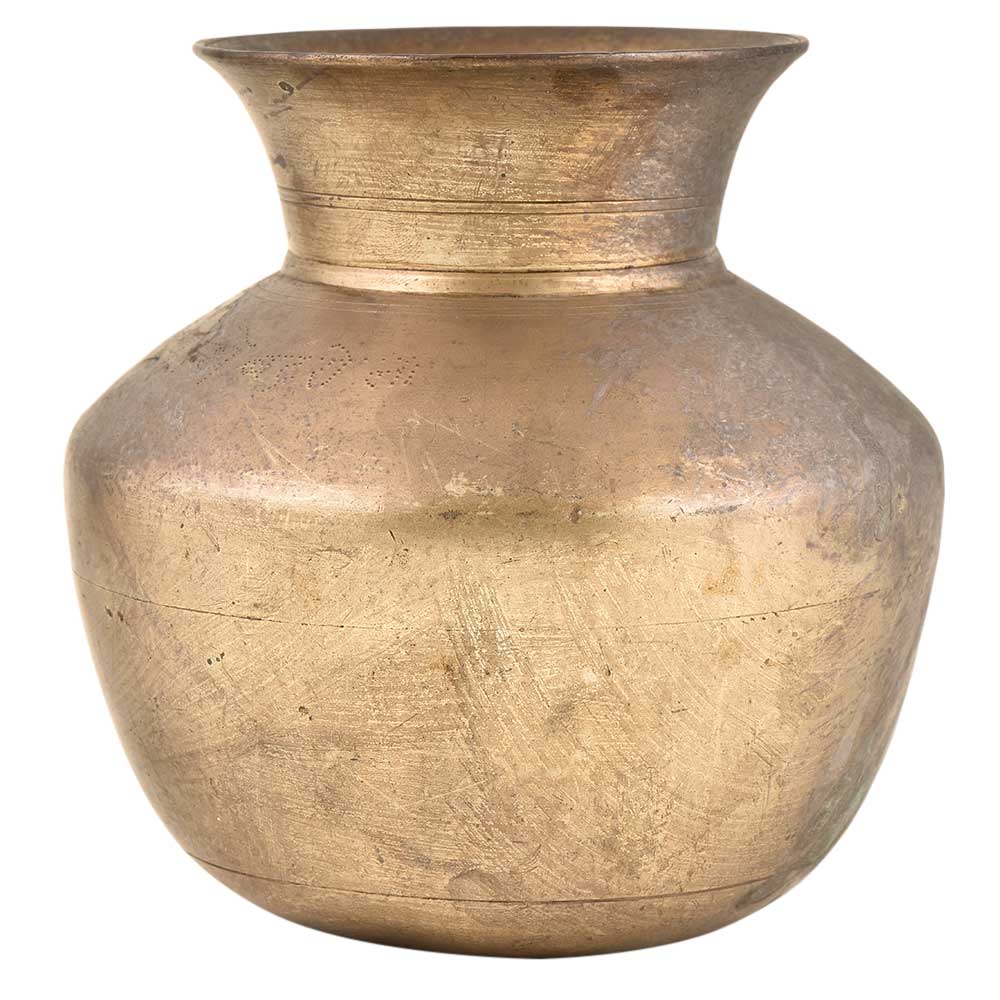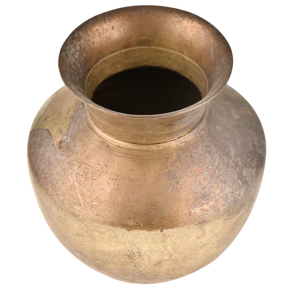 Rare Handmade Brass water storage vessel with a wide mouth and a broad base .This pot is made by the expert craftsmen of India. Use it as a collectors item or as a gifting option during wedding or other auspicious functions.