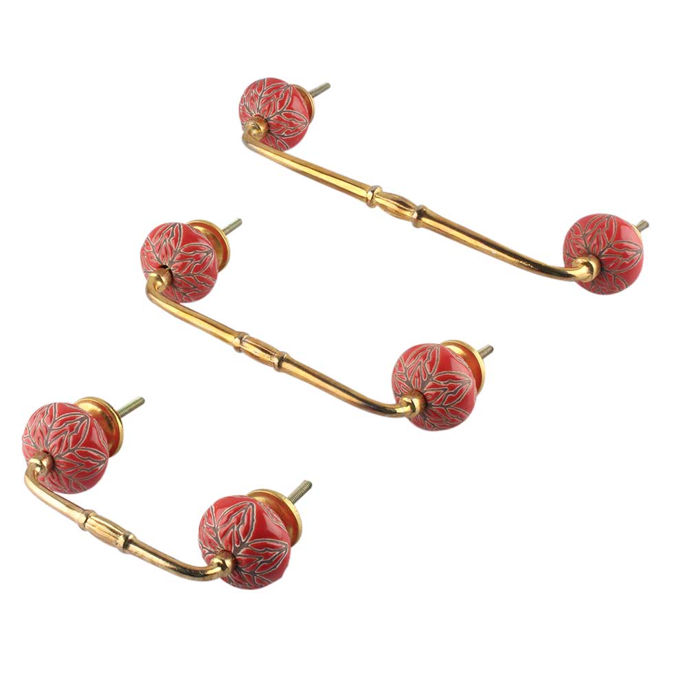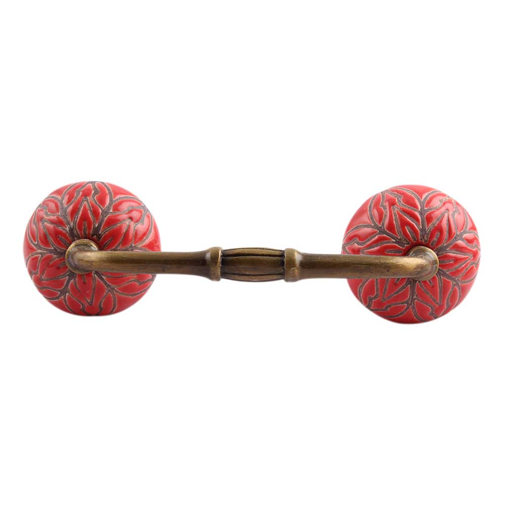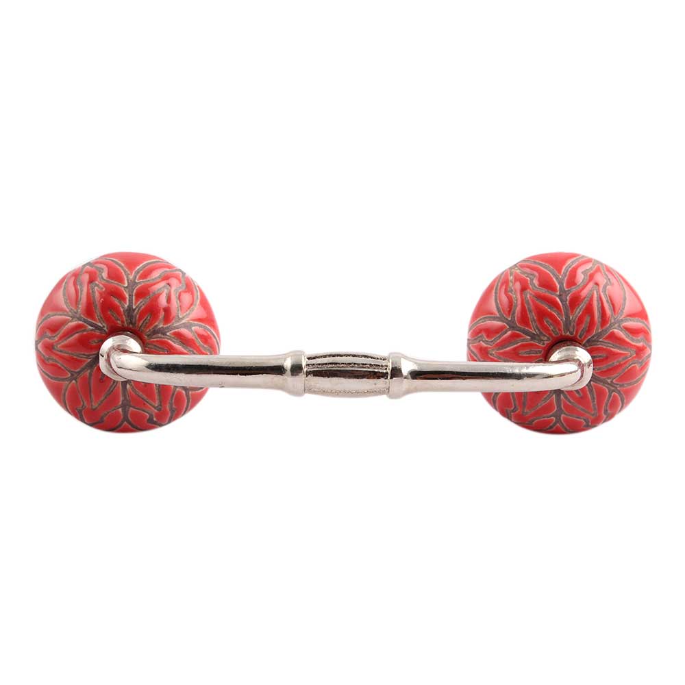 Red Amarylis Ceramic Bridge Handle. Ideal for Drawer, Dresser, Cabinet, Wardrobe, Cupboard and Almirah.