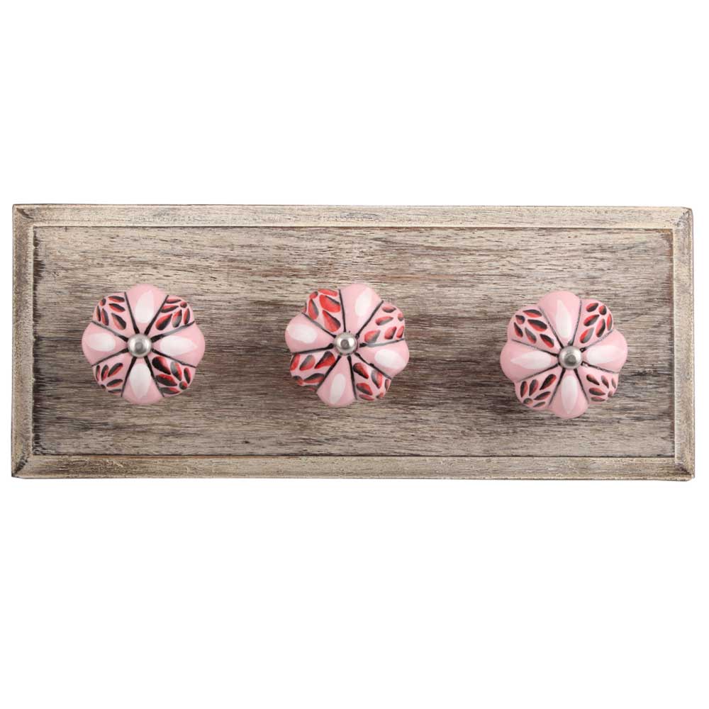 Red and Black Leaf Ceramic Melon Wooden Hook. A Perfect Complement to the Soft Tone of the Wood are these White Traditional Hat & Coat Hook Made of Genuine Porcelain and Brass. It can be use to Hang Jewellery, Leashes, Towels, Scarves, Light Weight Sweaters, Caps Etc.