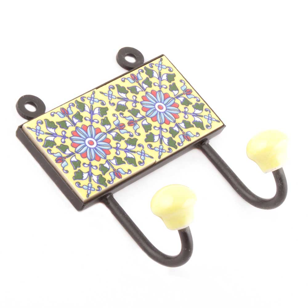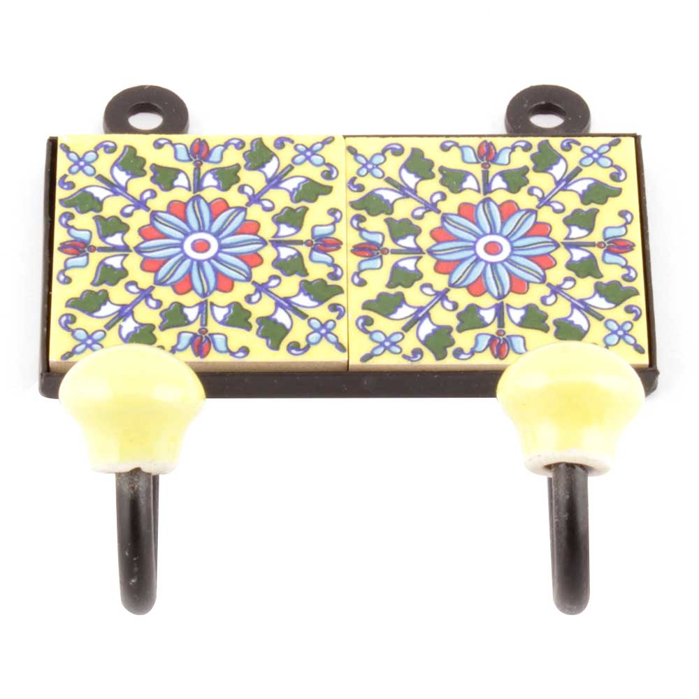 Red And Forest Green Floral Tiles Hooks Online. When Put on Wall or Cabinet it is an Art in itself. The Metal Part of this Hook is Black Powder Coated.