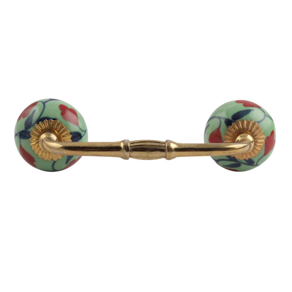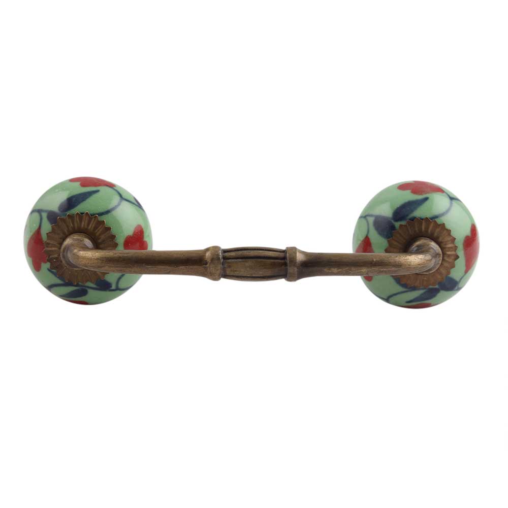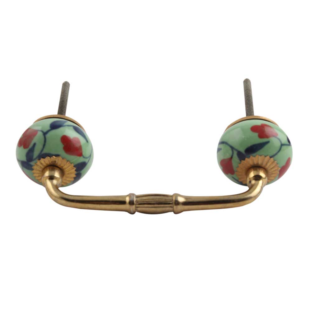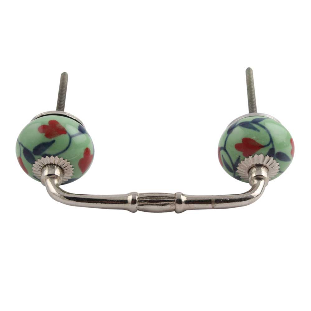 Red Anthurium Ceramic Bridge Handle. Ideal for Drawer, Dresser, Cabinet, Wardrobe, Cupboard and Almirah.