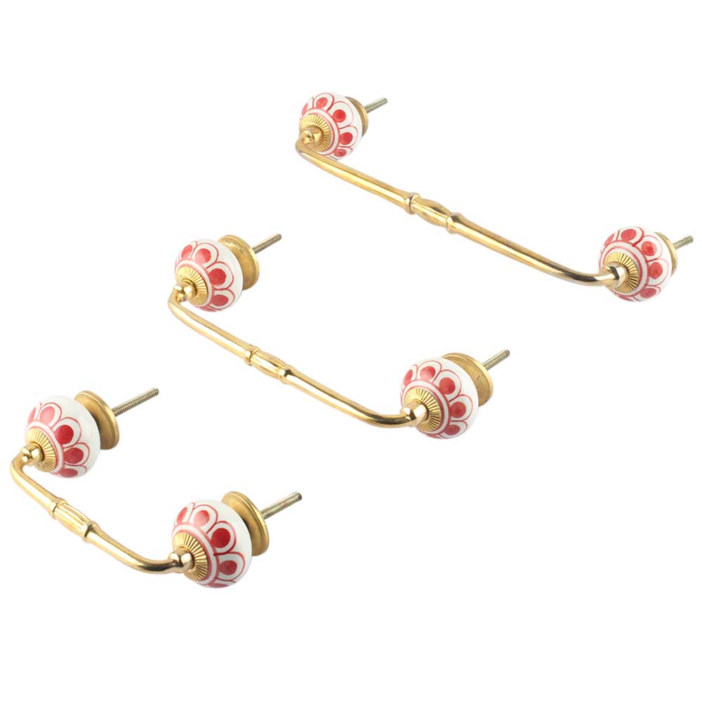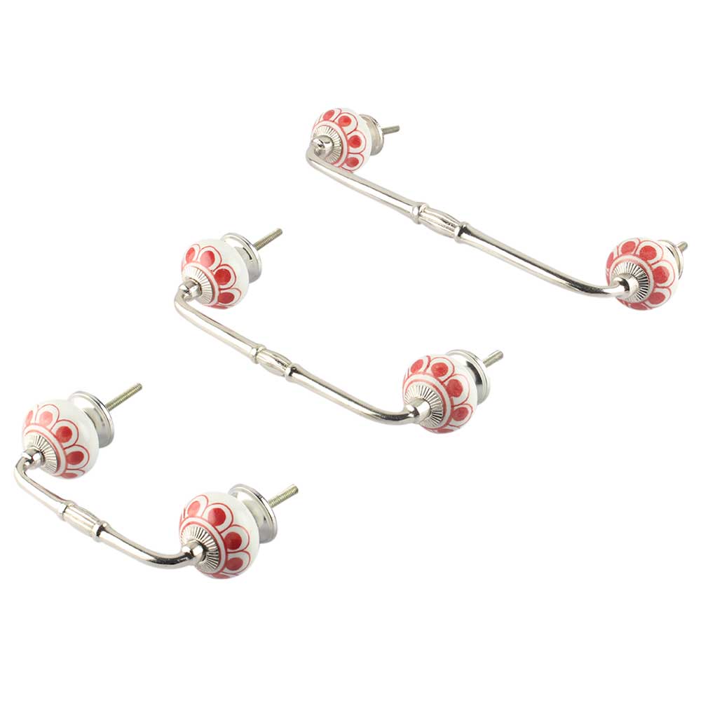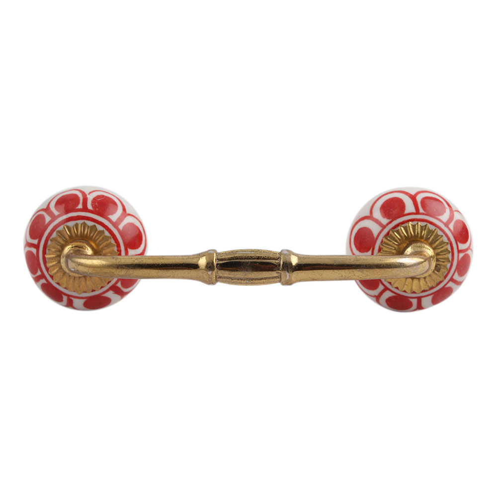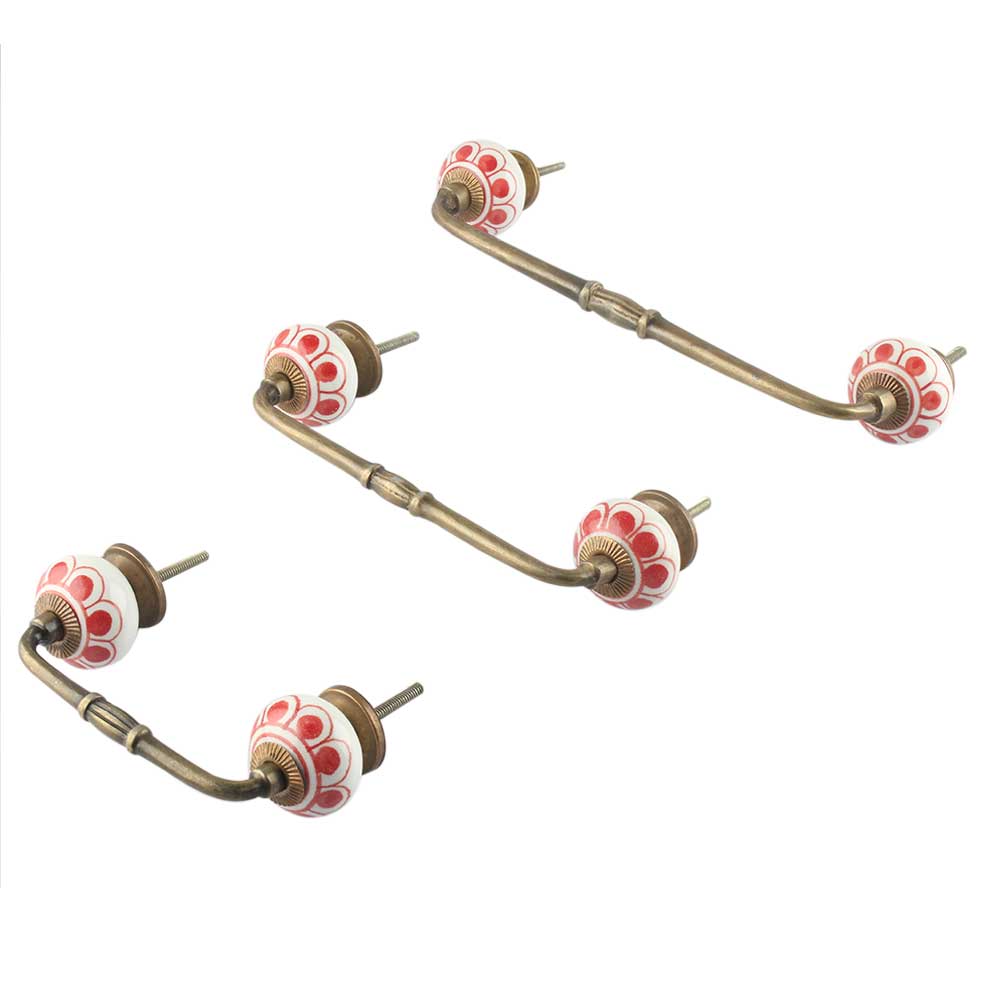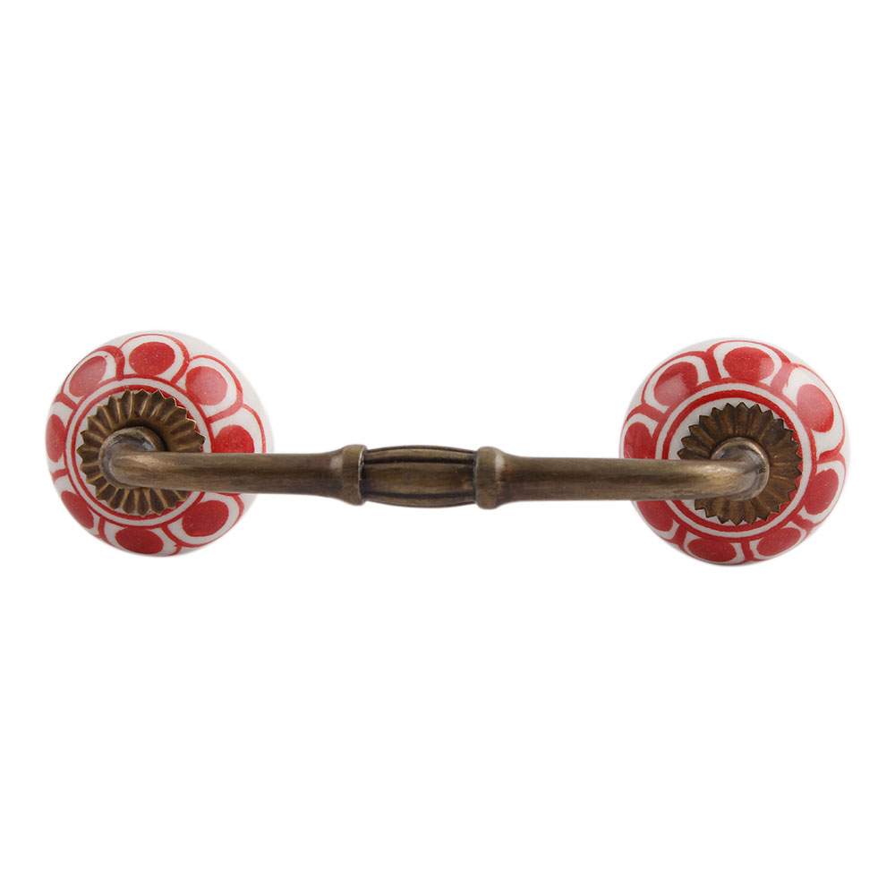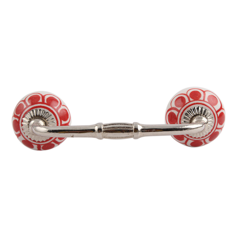 Red Baluster Ceramic Bridge Handle. Ideal for Drawer, Dresser, Cabinet, Wardrobe, Cupboard and Almirah.