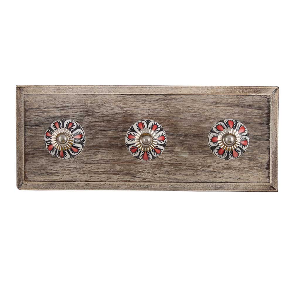 Red Black Drop Ceramic Wooden Hook. A Perfect Complement to the Soft Tone of the Wood are these White Traditional Hat & Coat Hook Made of Genuine Porcelain and Brass. It can be use to Hang Jewellery, Leashes, Towels, Scarves, Light Weight Sweaters, Caps Etc.