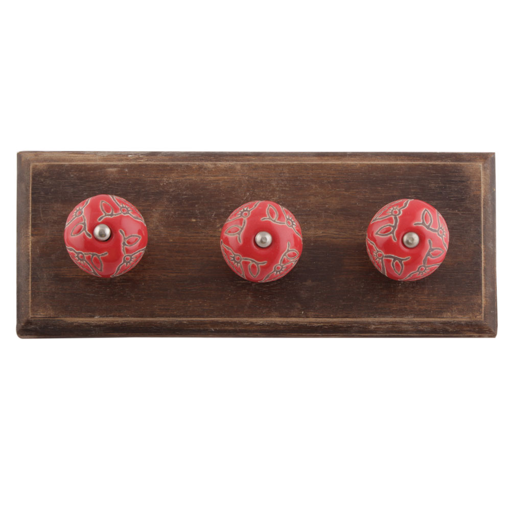 Red Calla Lily Brown Etched Ceramic Wooden Hook. A Perfect Complement to the Soft Tone of the Wood are these White Traditional Hat and Coat Hook Made of Genuine Porcelain and Brass. It can be used to Hang Jewelry, Leashes, Towels, Scarves, Light Weight Sweaters, Caps etc.
