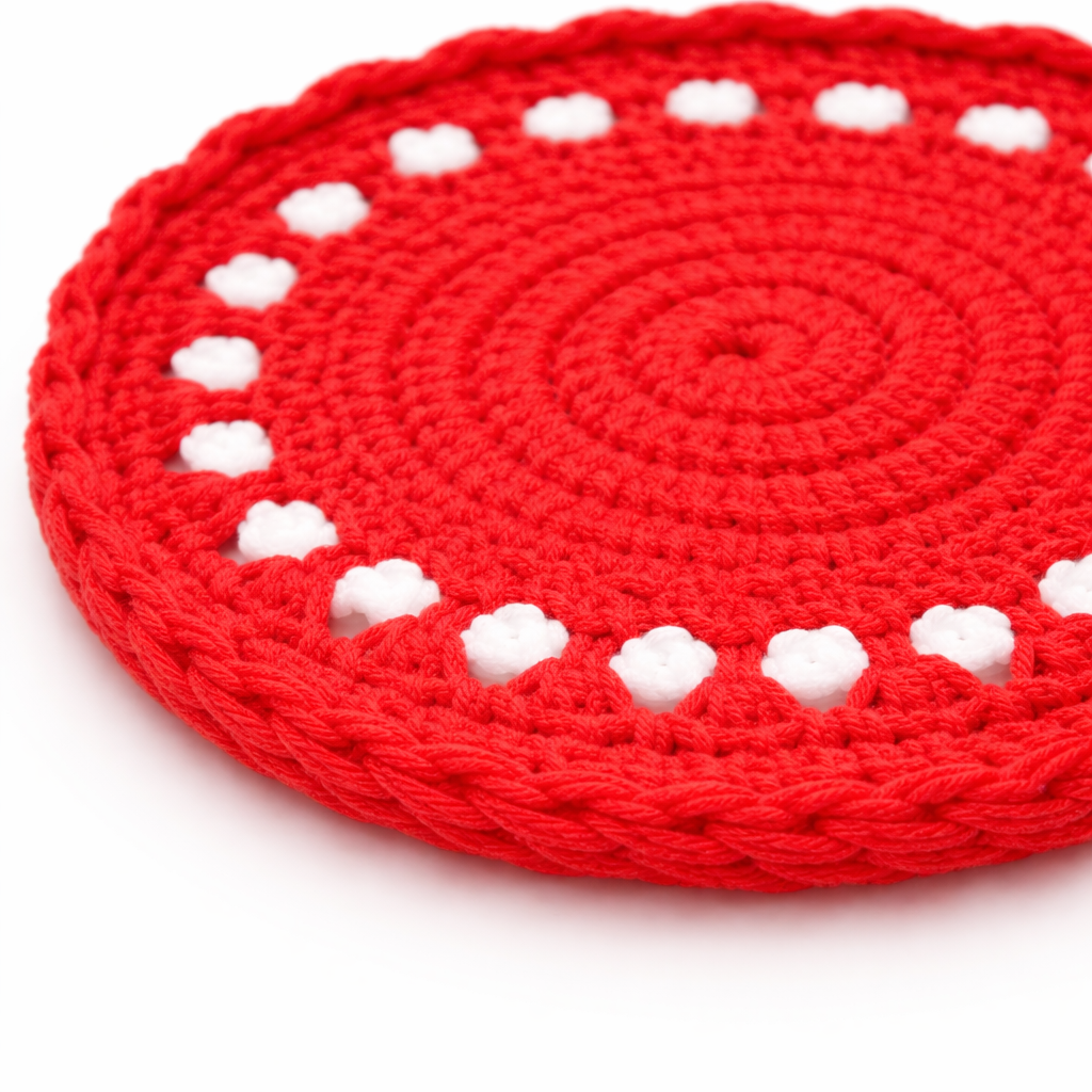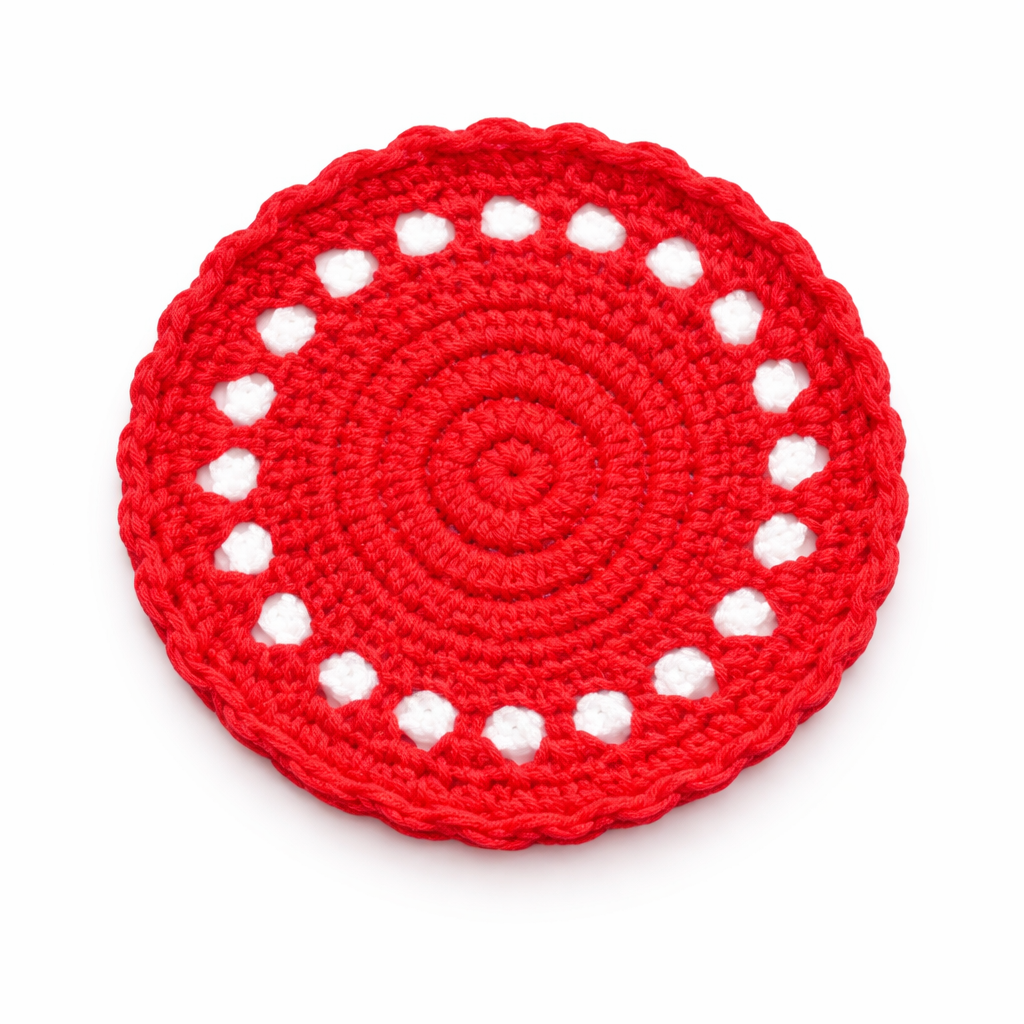 This red crochet doily coaster is handcrafted using high quality cotton yarn and designed in a classic circular crochet pattern. The rich red color adds a bold decorative touch to dining tables, coffee tables, and tea setups while highlighting traditional crochet craftsmanship. This cotton yarn coaster works both as a decorative doily and a practical surface protector for cups and mugs. Product Highlights Handcrafted crochet coaster made with cotton yarn Classic round crochet doily design Vibrant red color for bold table dcor Protects tables from heat, moisture, and cup marks Lightweight decorative handmade table accessory Material Details Material: Cotton yarn Technique: Hand crocheted Shape: Round Design: Traditional crochet lace pattern Finish: Soft handcrafted cotton weave Usage Coffee mug and tea cup coaster Decorative doily for trays and table displays Accent mat for dining tables and coffee tables Handmade decorative accessory for kitchen dcor Care Instructions Hand wash gently with mild detergent and allow it to air dry to maintain the crochet pattern and cotton yarn quality. FAQs What material is used in this crochet coaster? This coaster is handcrafted using durable cotton yarn. Can it be used as a coaster for hot drinks? Yes, it can be used for tea cups, coffee mugs, and glasses while protecting table surfaces. Are all crochet pieces identical? No. Since each coaster is handmade, small variations in the crochet pattern may occur.