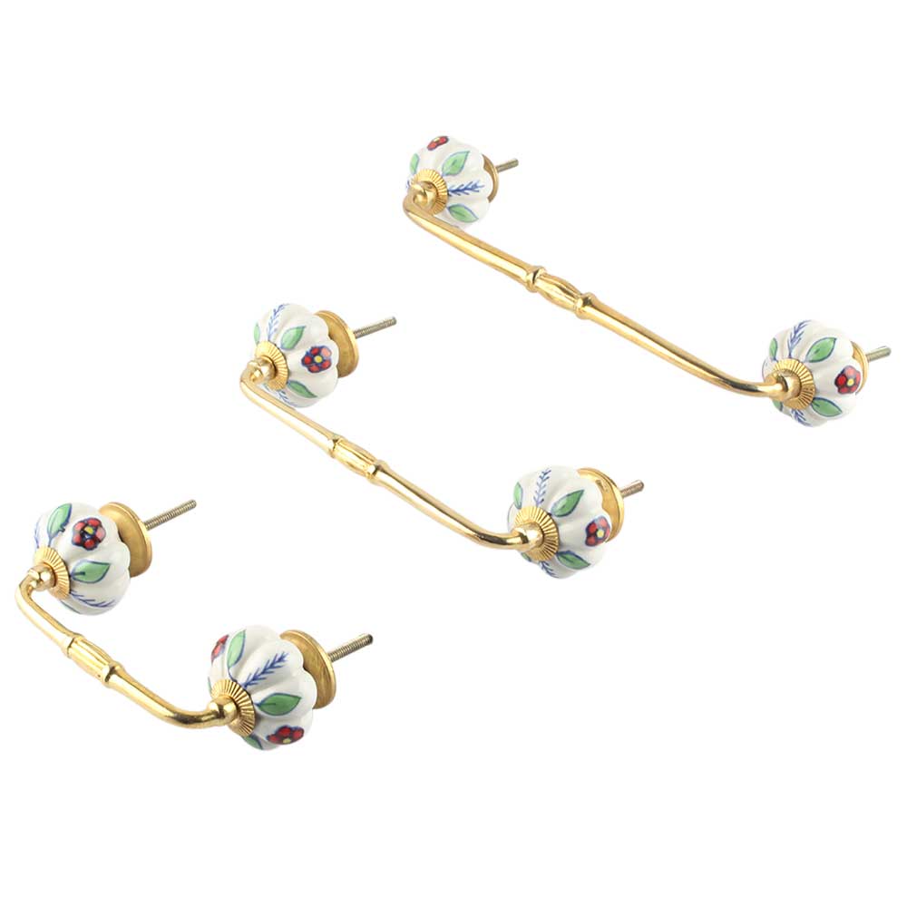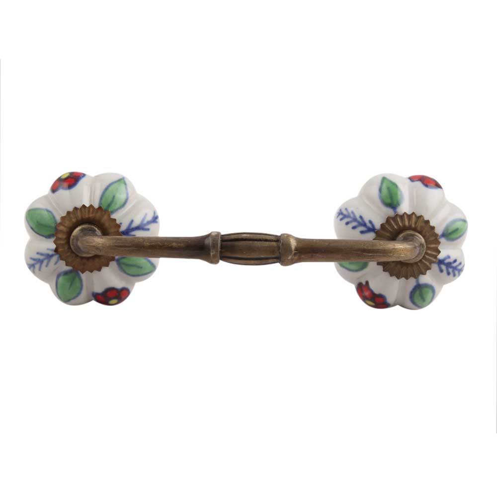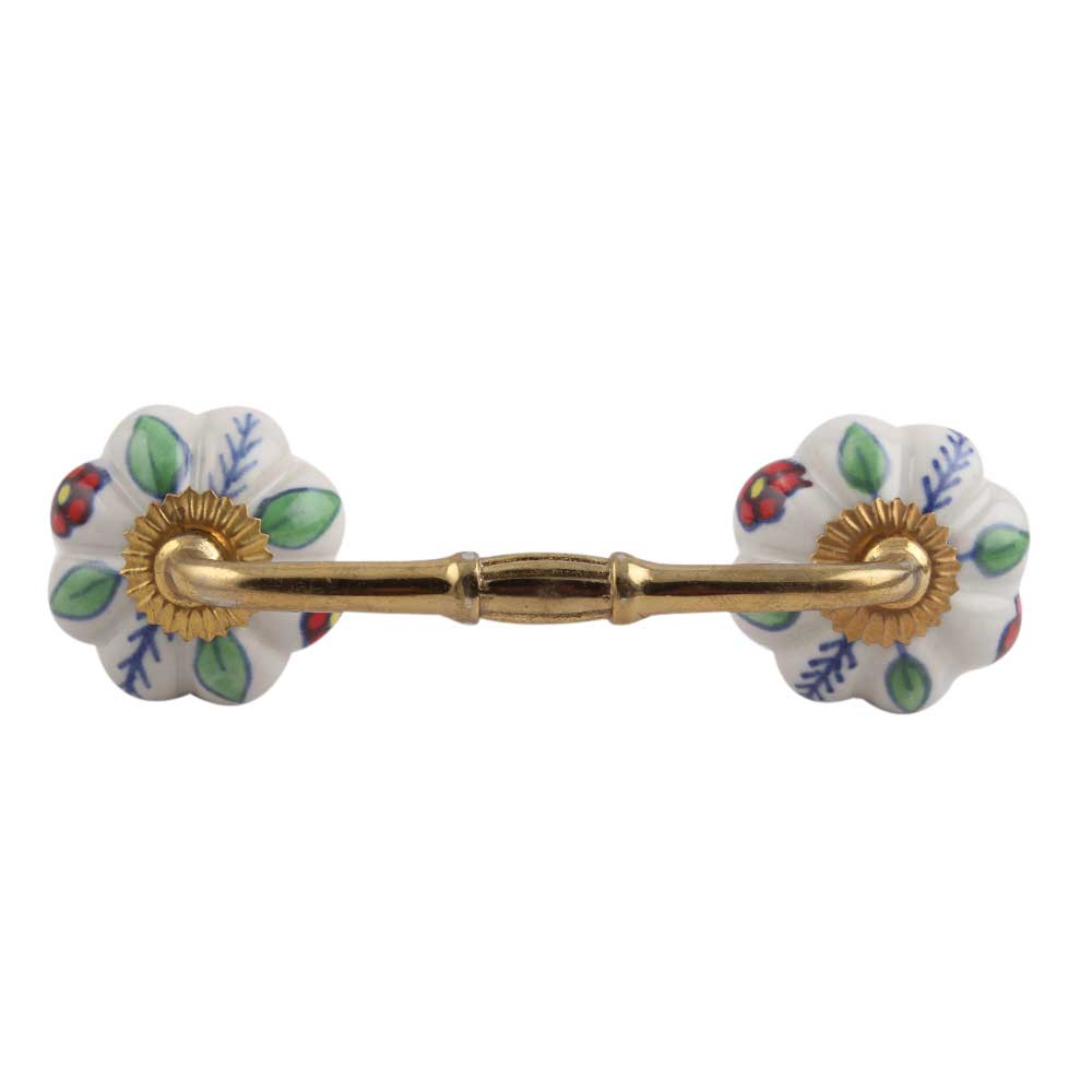 Red Dahlia Ceramic Bridge Handle. Ideal for Drawer, Dresser, Cabinet, Wardrobe, Cupboard and Almirah.