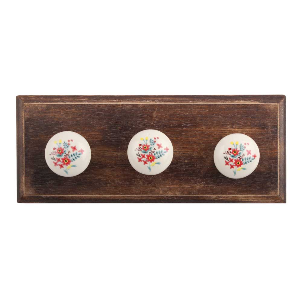 Red Dahlia Flower Ceramic Wooden Hook. A Perfect Complement to the Soft Tone of the Wood are these White Traditional Hat Coat Hook Made of Genuine Porcelain and Brass. It can be use to Hang Jewellery, Leashes, Towels, Scarves, Light Weight Sweaters, Caps Etc.