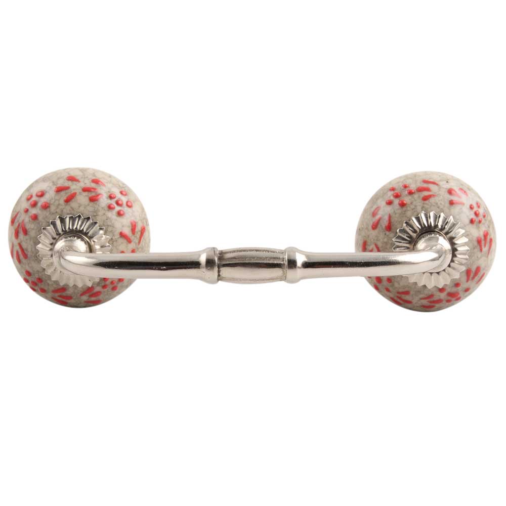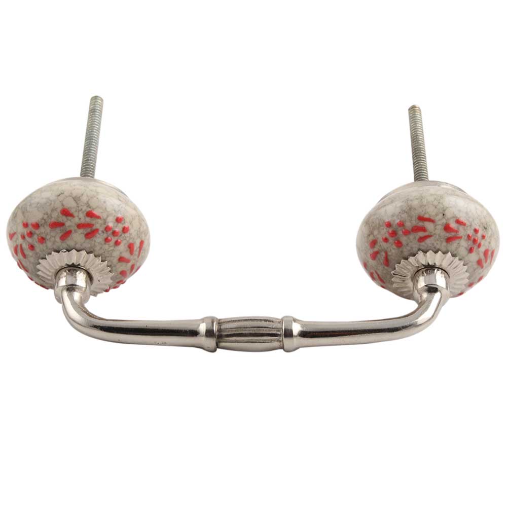 Ideal for use on cabinets, drawers, wardrobes, or even as a stylish door handle, this Red Embossed Crackle Ceramic Bridge Handle enhances multiple areas of your home with its bold color and intricate design.