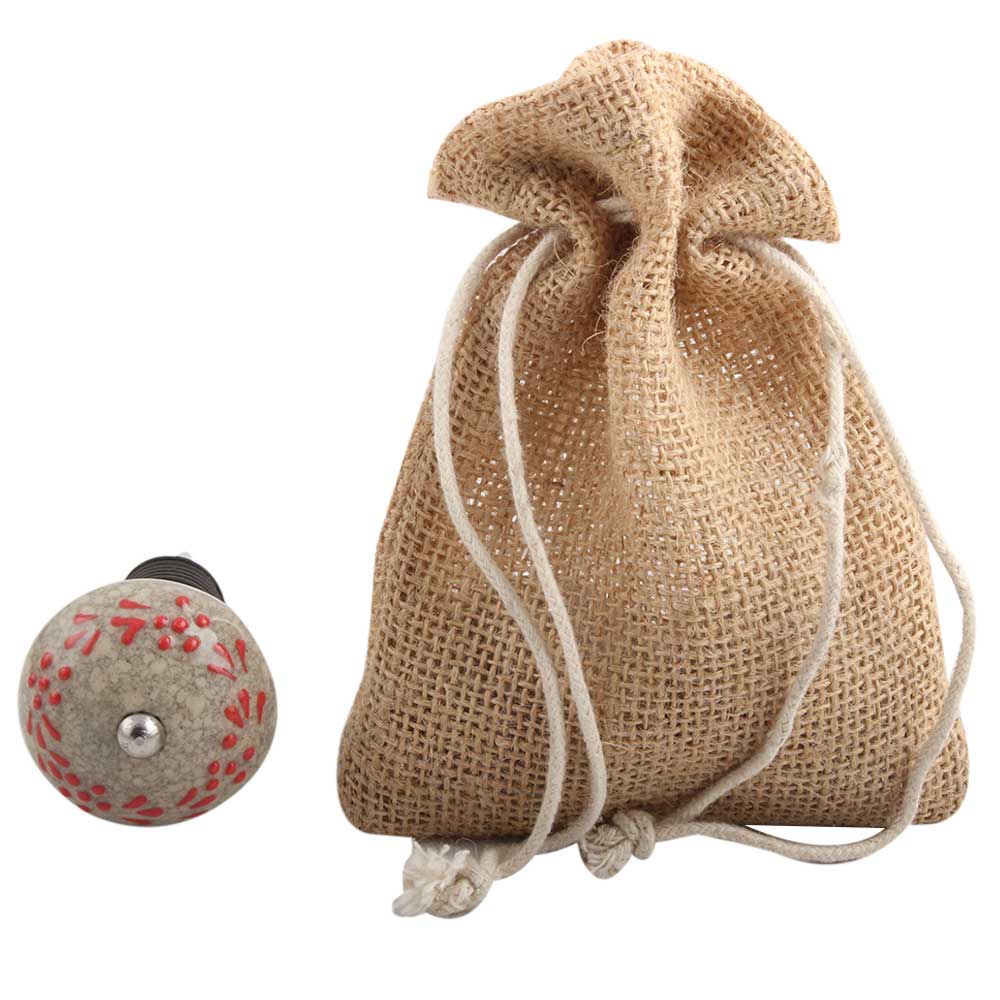 Red Embossed Crackle Ceramic Wine Stopper.zinc alloy wine bottle stopper with attractive Jute Bag Packaging.