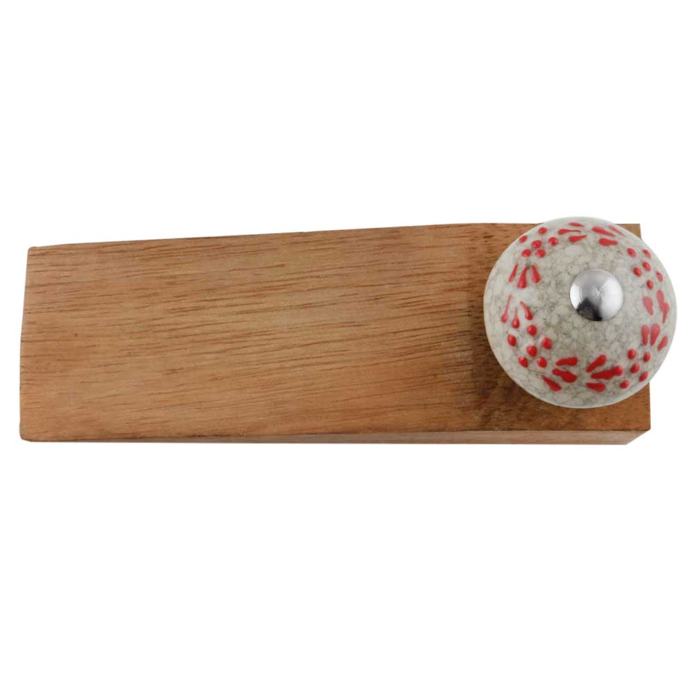 Handmade Ceramic and Wooden Door Stopper.Wooden Door Stopper with a Ceramic Knob to Carry it Easily. This Wooden Door Stopper has Glue Dots under it to Ensure that it does not Slip. It is Handmade by the Craftsmen of India and this Innovative Door Stopper won't Disappoint You.