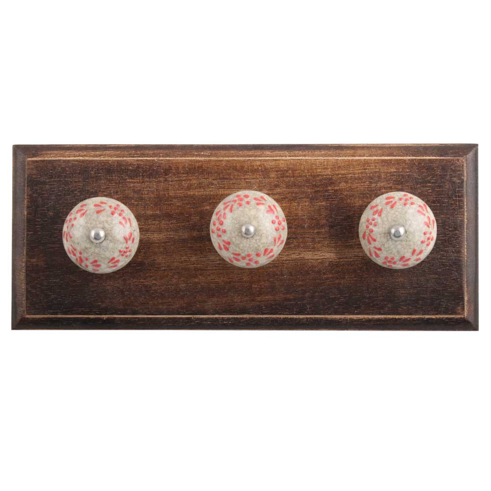 Red Embossed Crackle Ceramic Wooden Hook. A Perfect Complement to the Soft Tone of the Wood are these White Traditional Hat & Coat Hook Made of Genuine Porcelain and Brass. It can be use to Hang Jewellery, Leashes, Towels, Scarves, Light Weight Sweaters, Caps Etc.