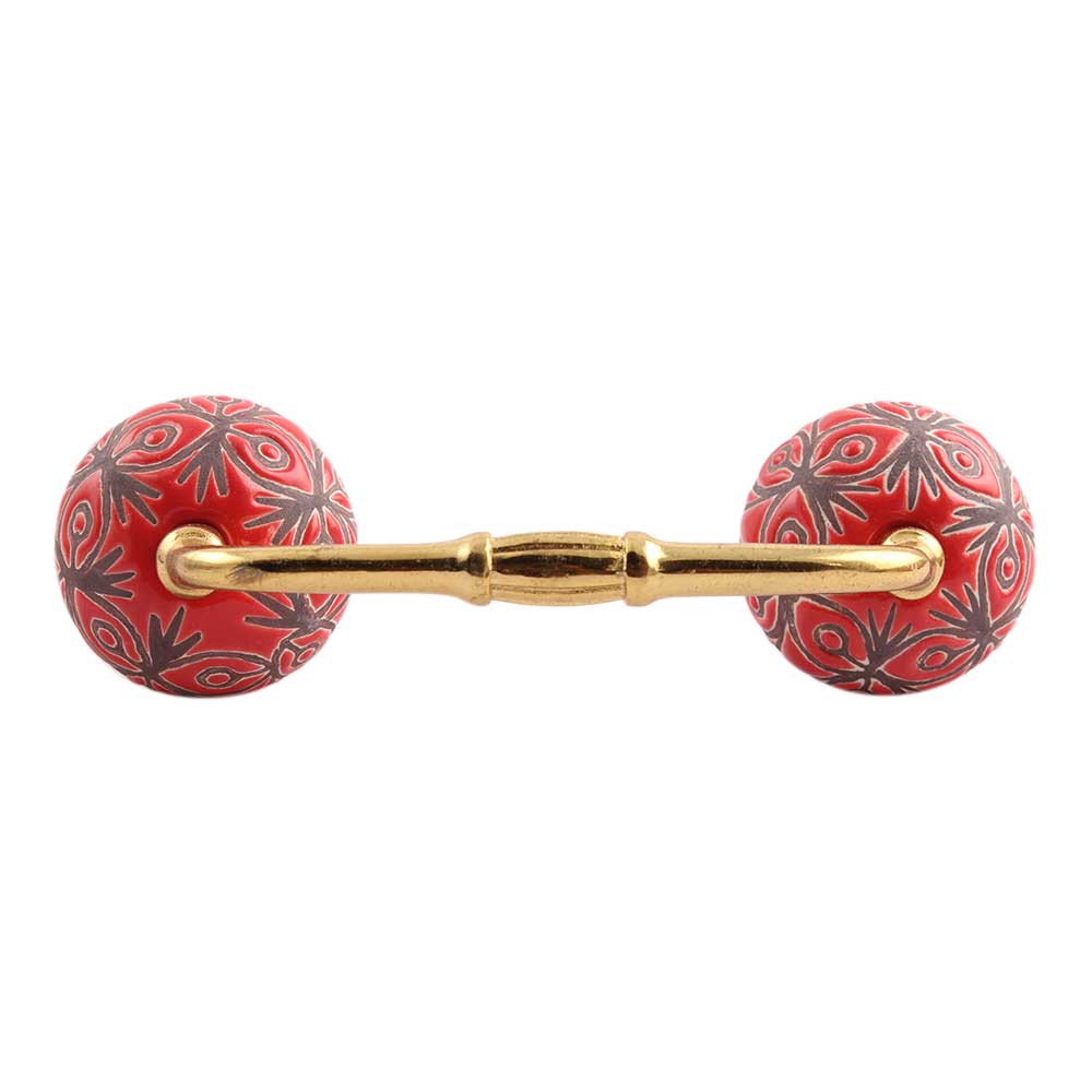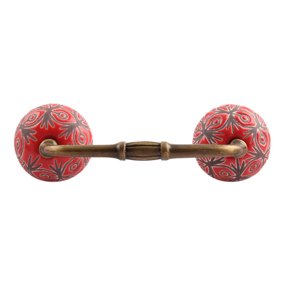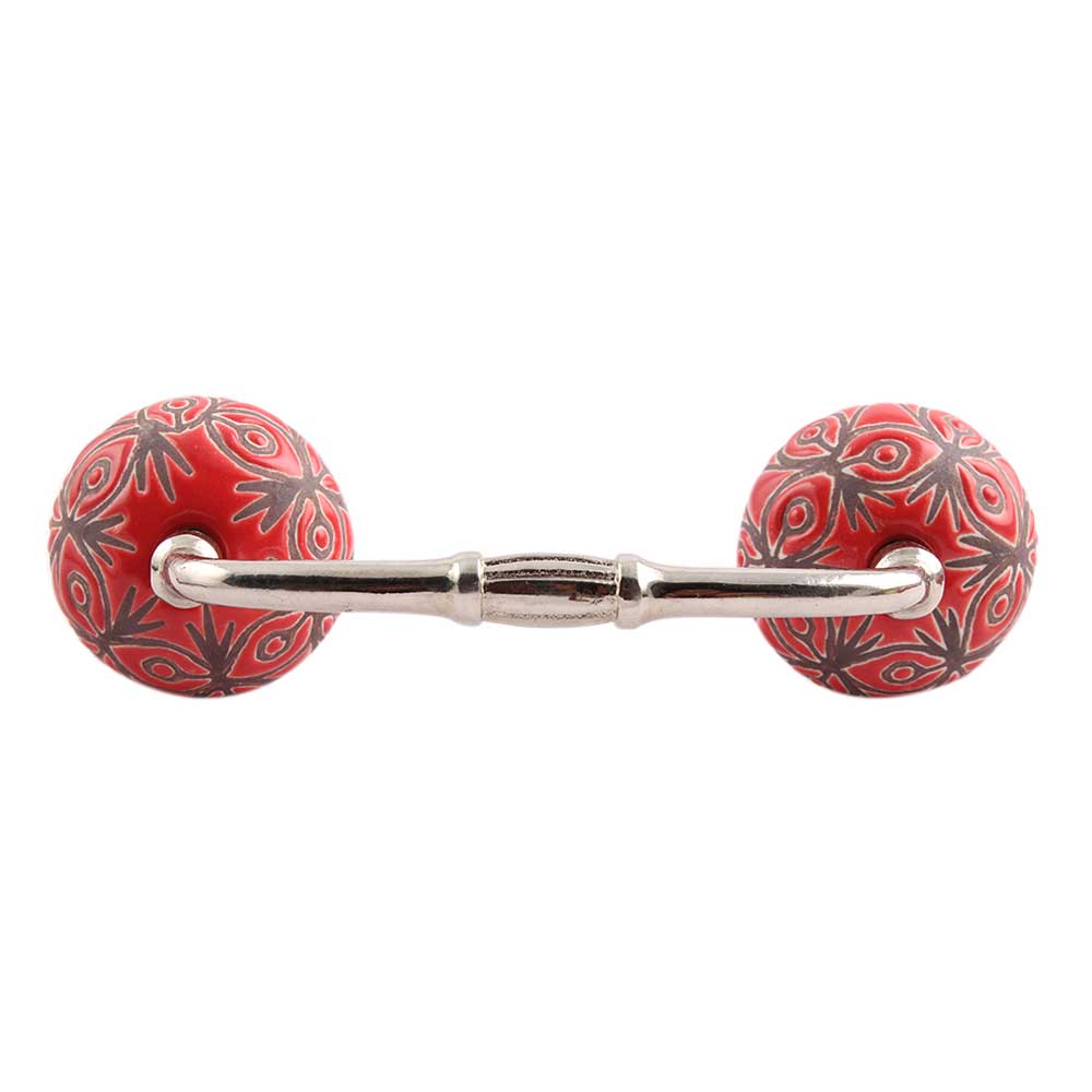 Red Etched Ceramic Bridge Handle. Ideal for Drawer, Dresser, Cabinet, Wardrobe, Cupboard and Almirah.
