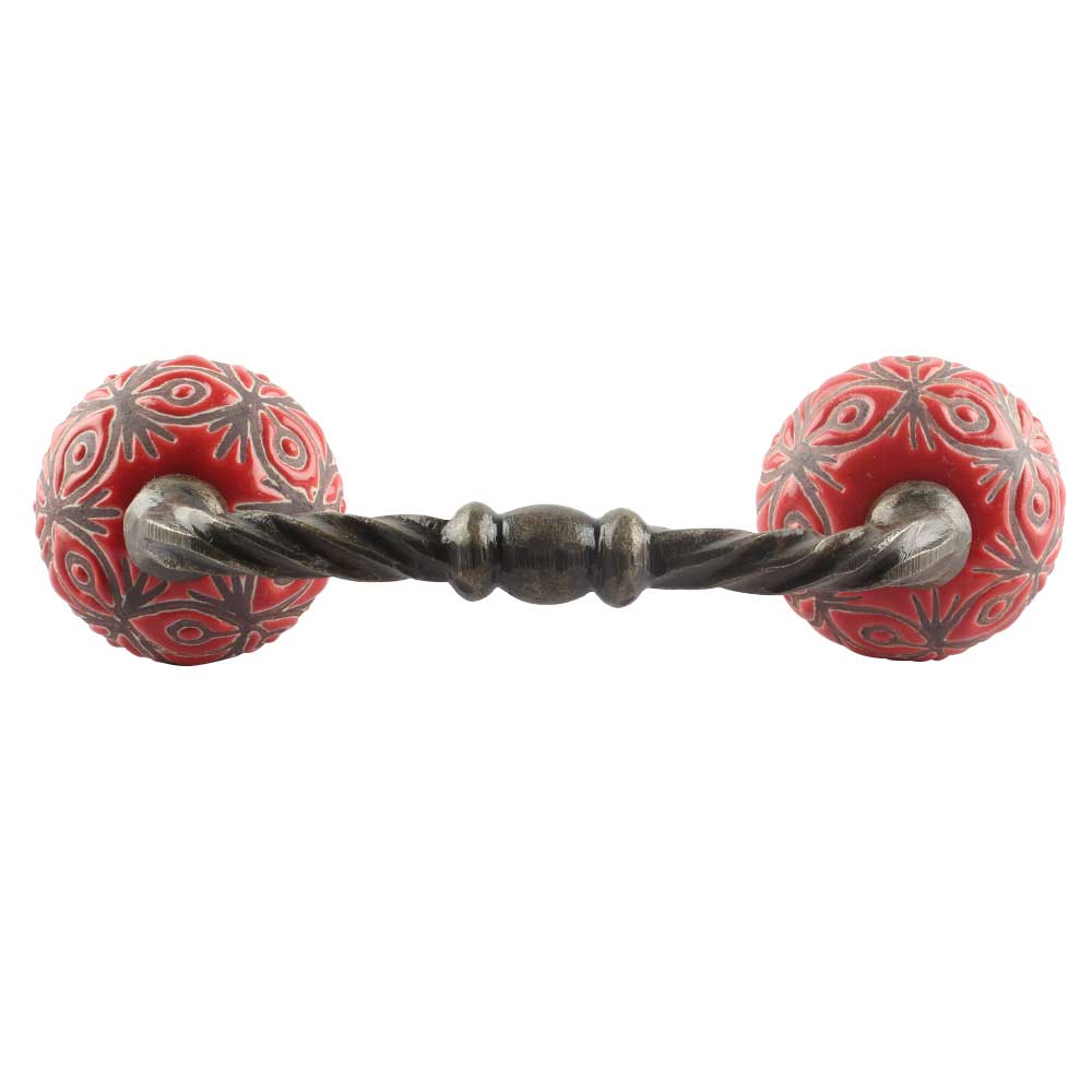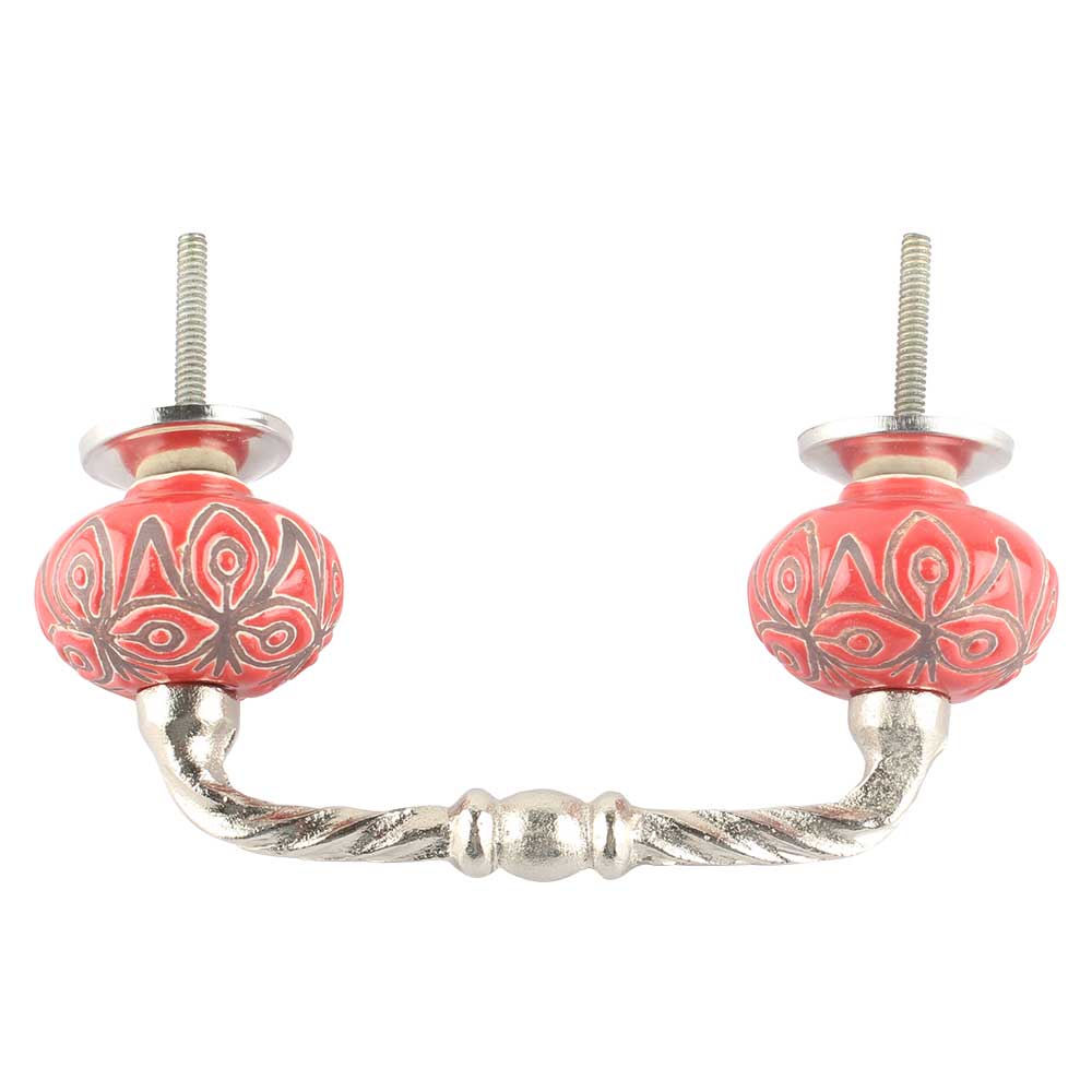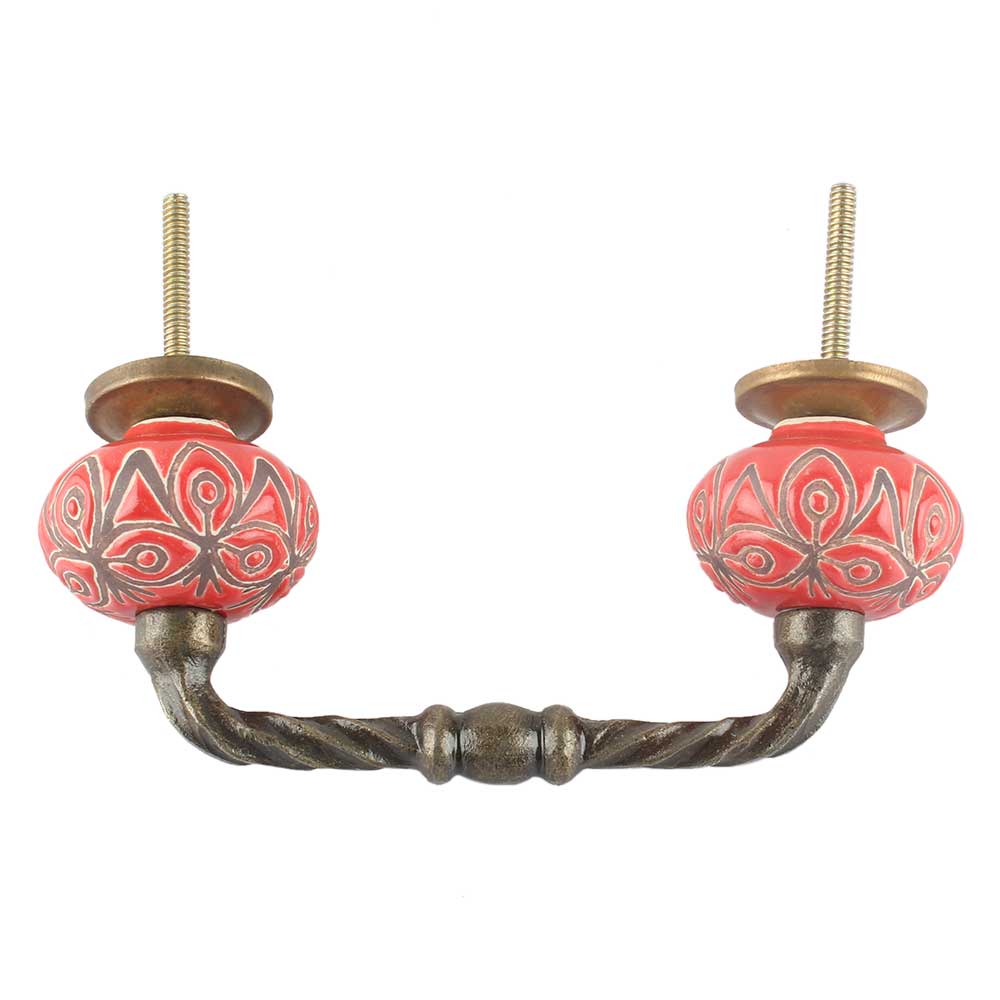Red Etched Ceramic Cut Bridge Handle. Ideal for Drawer, Dresser, Cabinet, Wardrobe, Cupboard and Almirah etc.