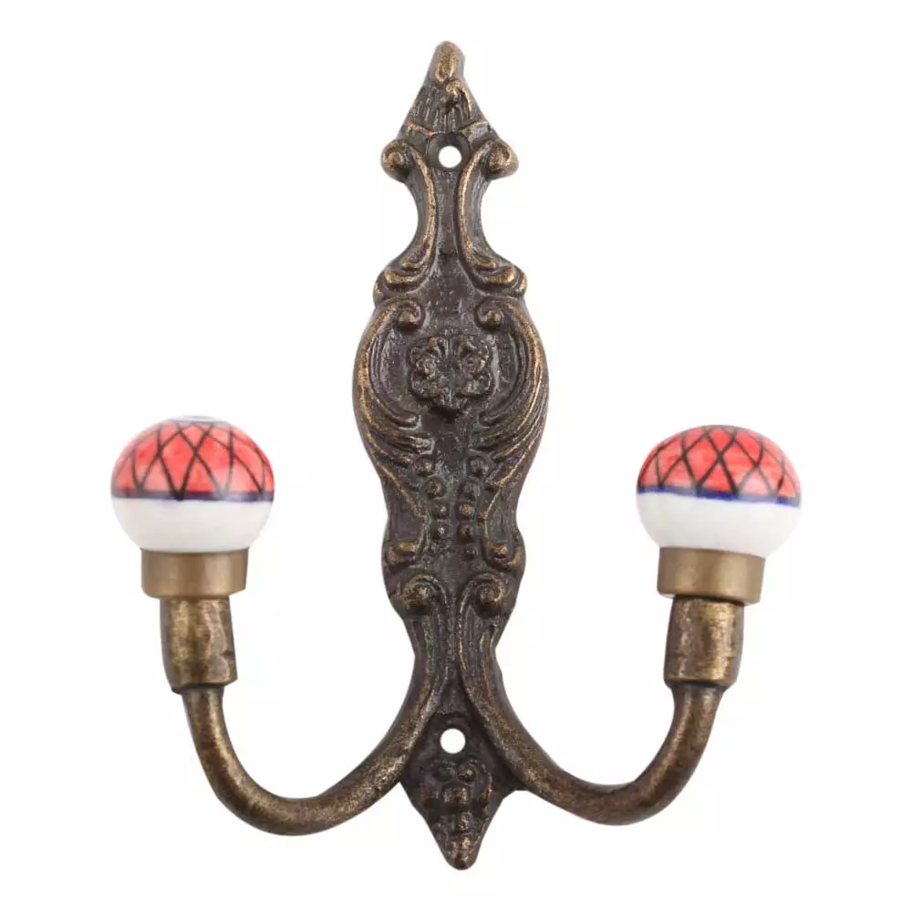 Red Floral Ceramic Iron Hook. When Put on Wall or Cabinet It Gives A Sturdy Look. This Hook is Strong Enough to Hold Your Cloths, Keys, Tea Cups, Coffee Mugs, Hand Towels Etc