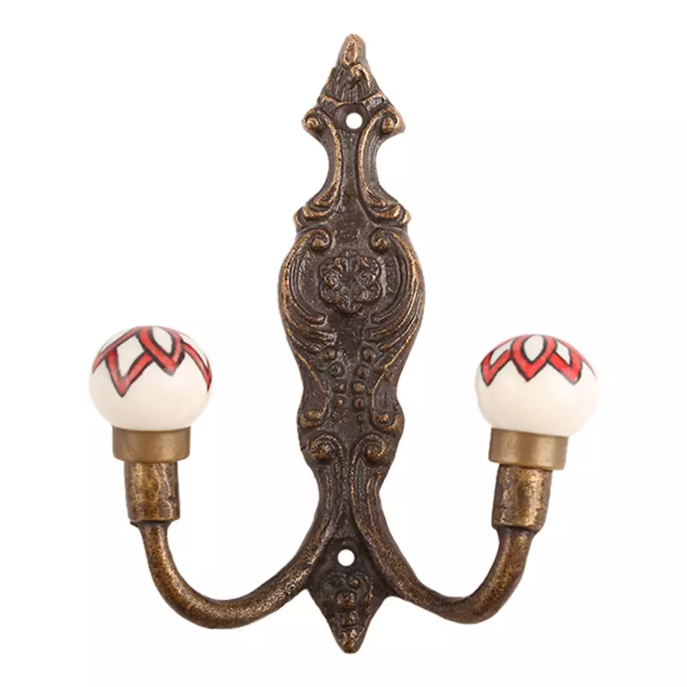 Red Floral Ceramic Iron Hook. When Put on Wall or Cabinet It Gives A Sturdy Look. This Hook is Strong Enough to Hold Your Cloths, Keys, Tea Cups, Coffee Mugs, Hand Towels Etc
