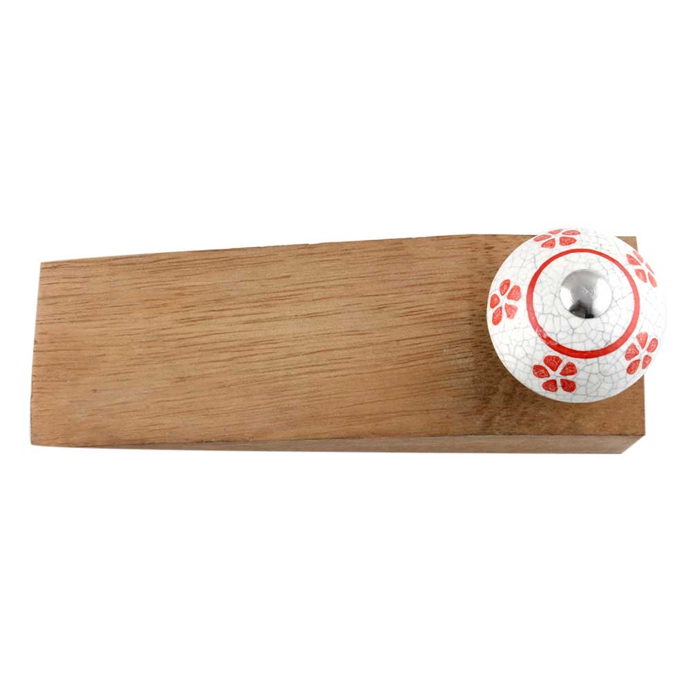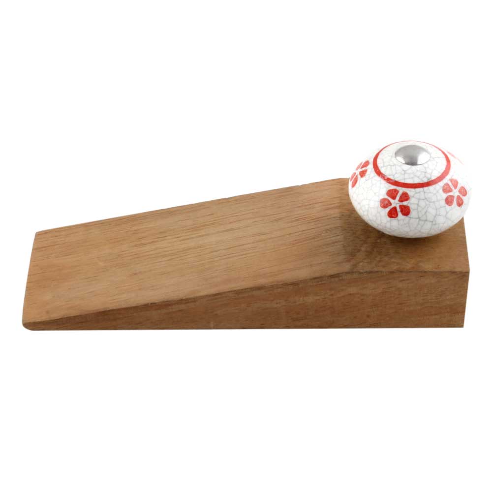 Handmade Ceramic and Wooden Door Stopper.Wooden Door Stopper with a Ceramic Knob to Carry it Easily. This Wooden Door Stopper has Glue Dots under it to Ensure that it does not Slip. It is Handmade by the Craftsmen of India and this Innovative Door Stopper won't Disappoint You.