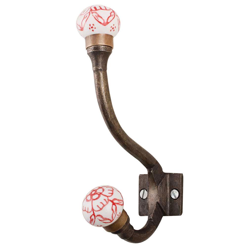 Red Floral Iron Hook-Ehg-72. When Put on Wall or Cabinet It Gives A Sturdy Look. This Hook is Strong Enough to Hold Your Cloths, Keys, Tea Cups, Coffee Mugs, Hand Towels Etc.