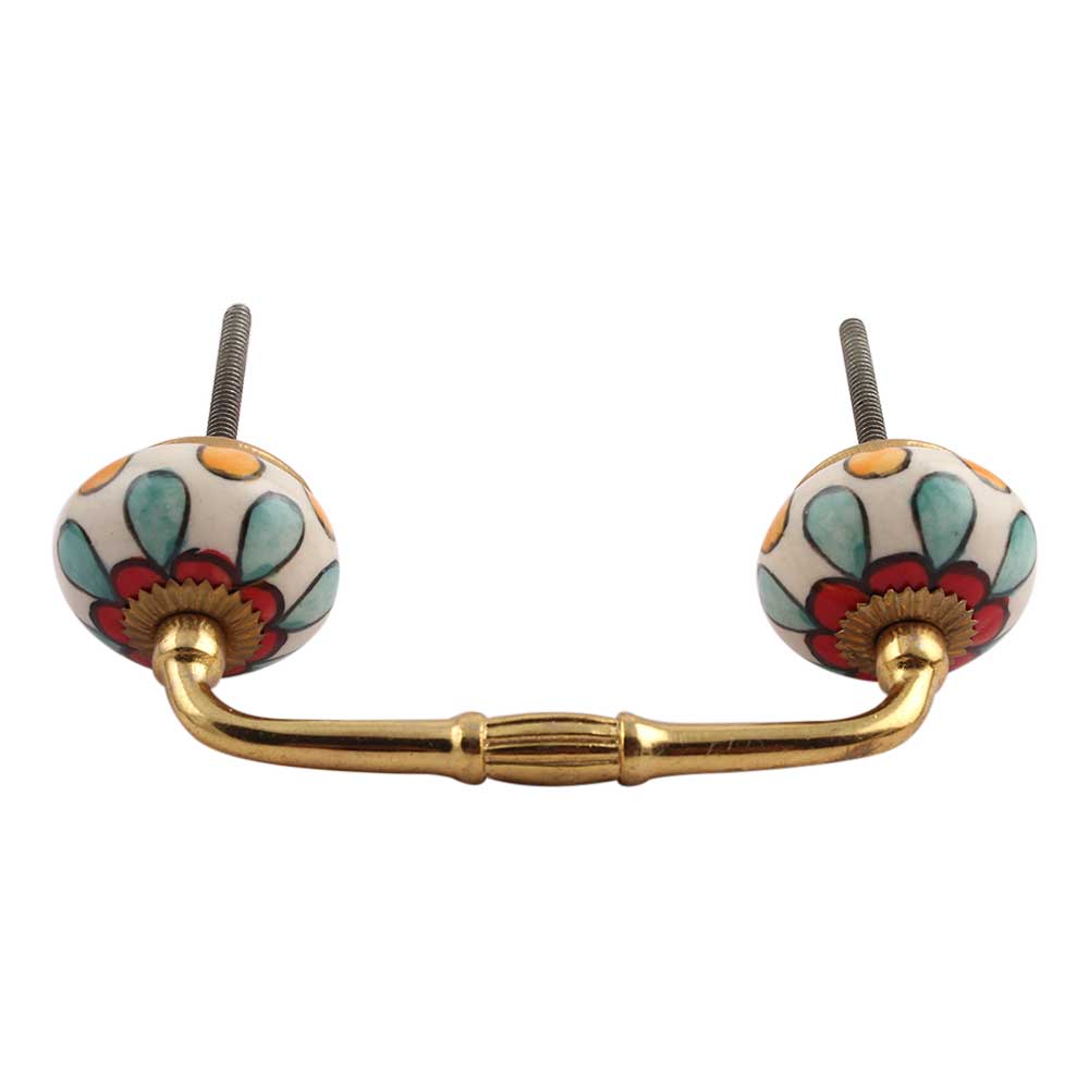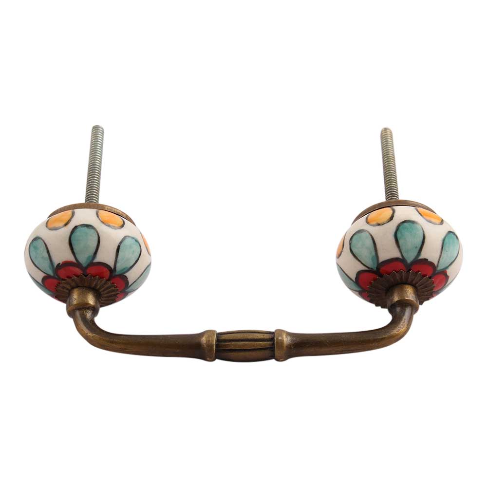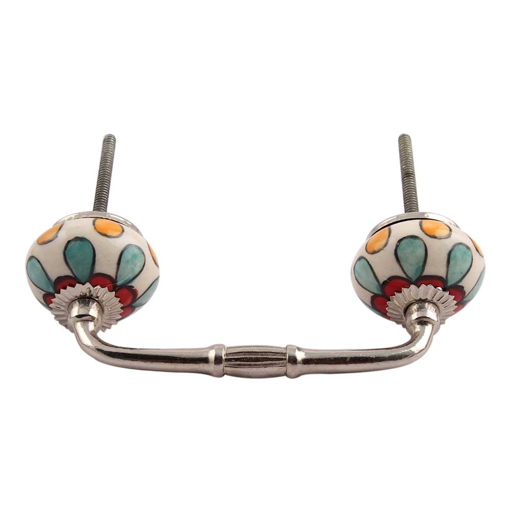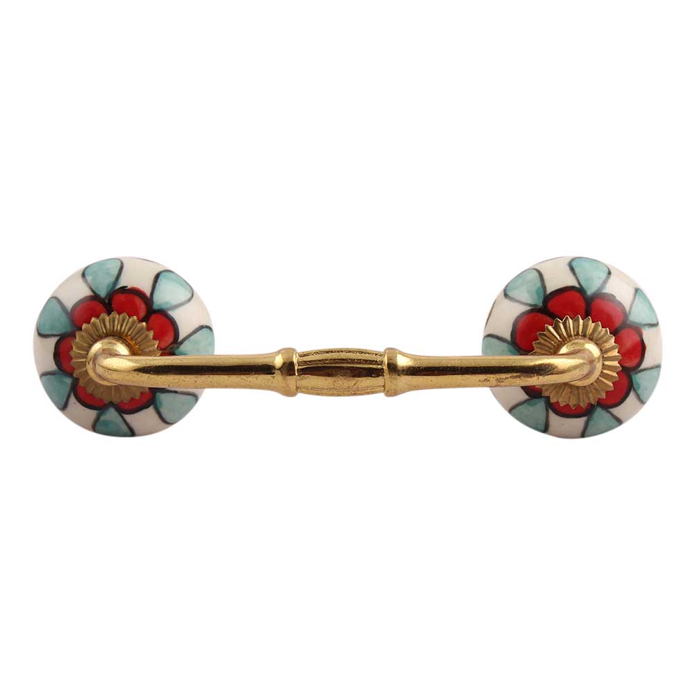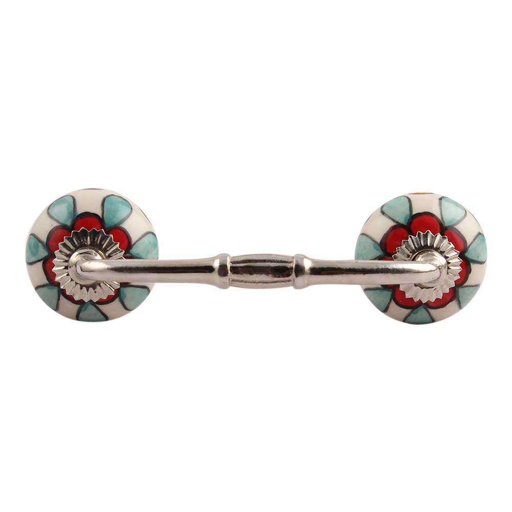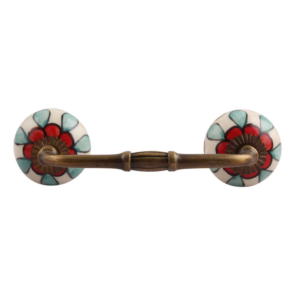 Red Flower Ceramic Bridge Handle. Ideal for Drawer, Dresser, Cabinet, Wardrobe, Cupboard and Almirah.