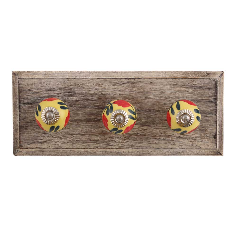 Red Flower Ceramic Wooden Hook. A Perfect Complement to the Soft Tone of the Wood are these White Traditional Hat & Coat Hook Made of Genuine Porcelain and Brass. It can be use to Hang Jewellery, Leashes, Towels, Scarves, Light Weight Sweaters, Caps Etc.