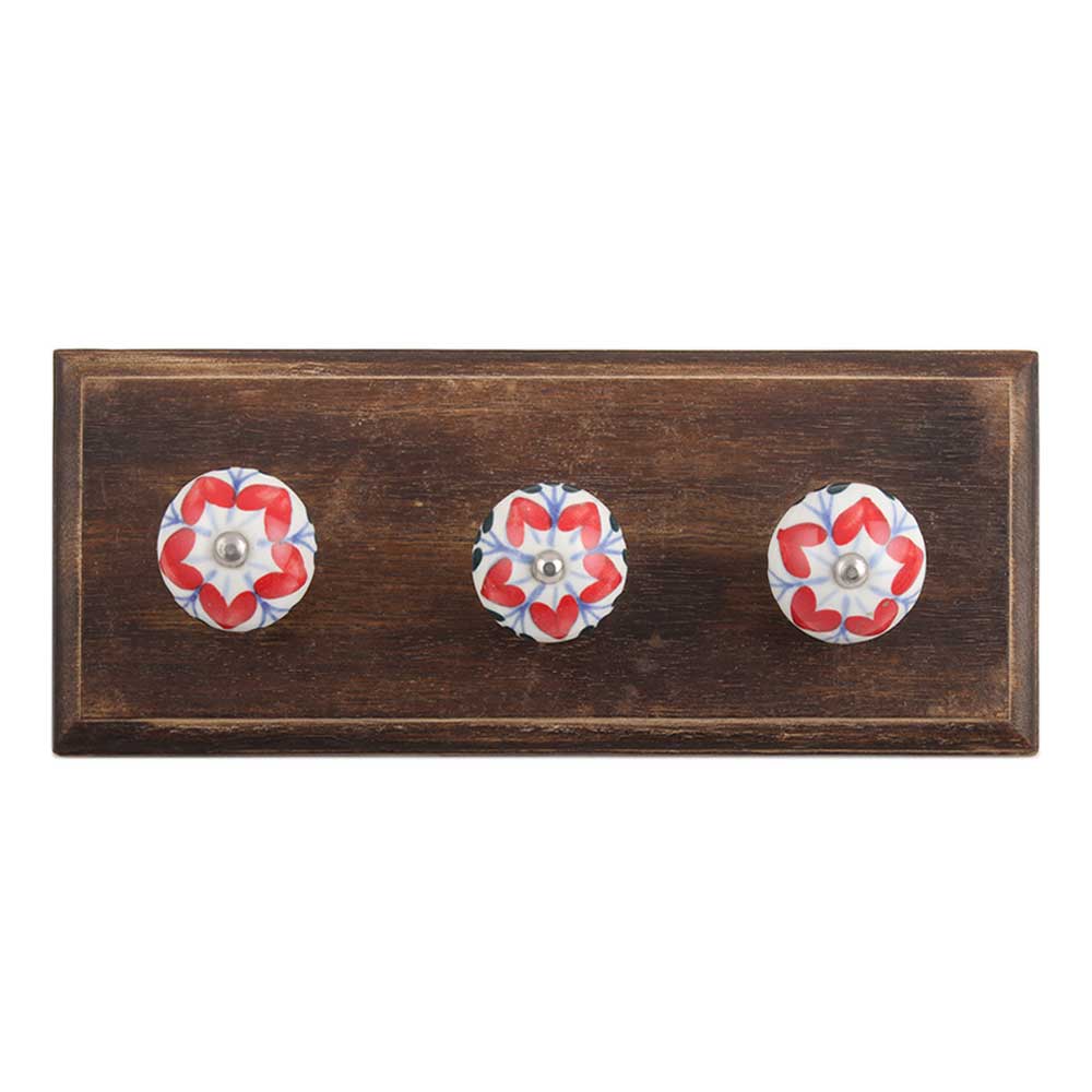Red Flower Ceramic Wooden Hook. A Perfect Complement to the Soft Tone of the Wood are these White Traditional Hat & Coat Hook Made of Genuine Porcelain and Brass. It can be use to Hang Jewellery, Leashes, Towels, Scarves, Light Weight Sweaters, Caps Etc.