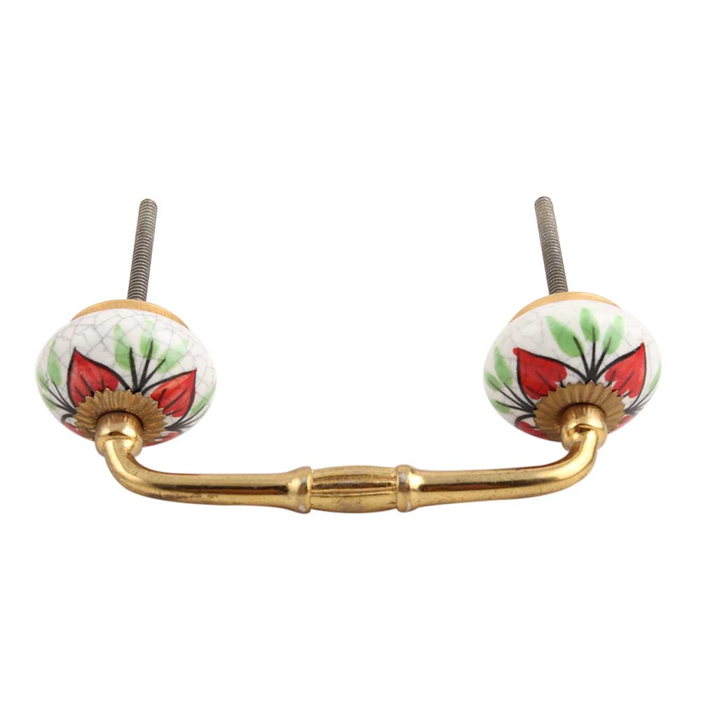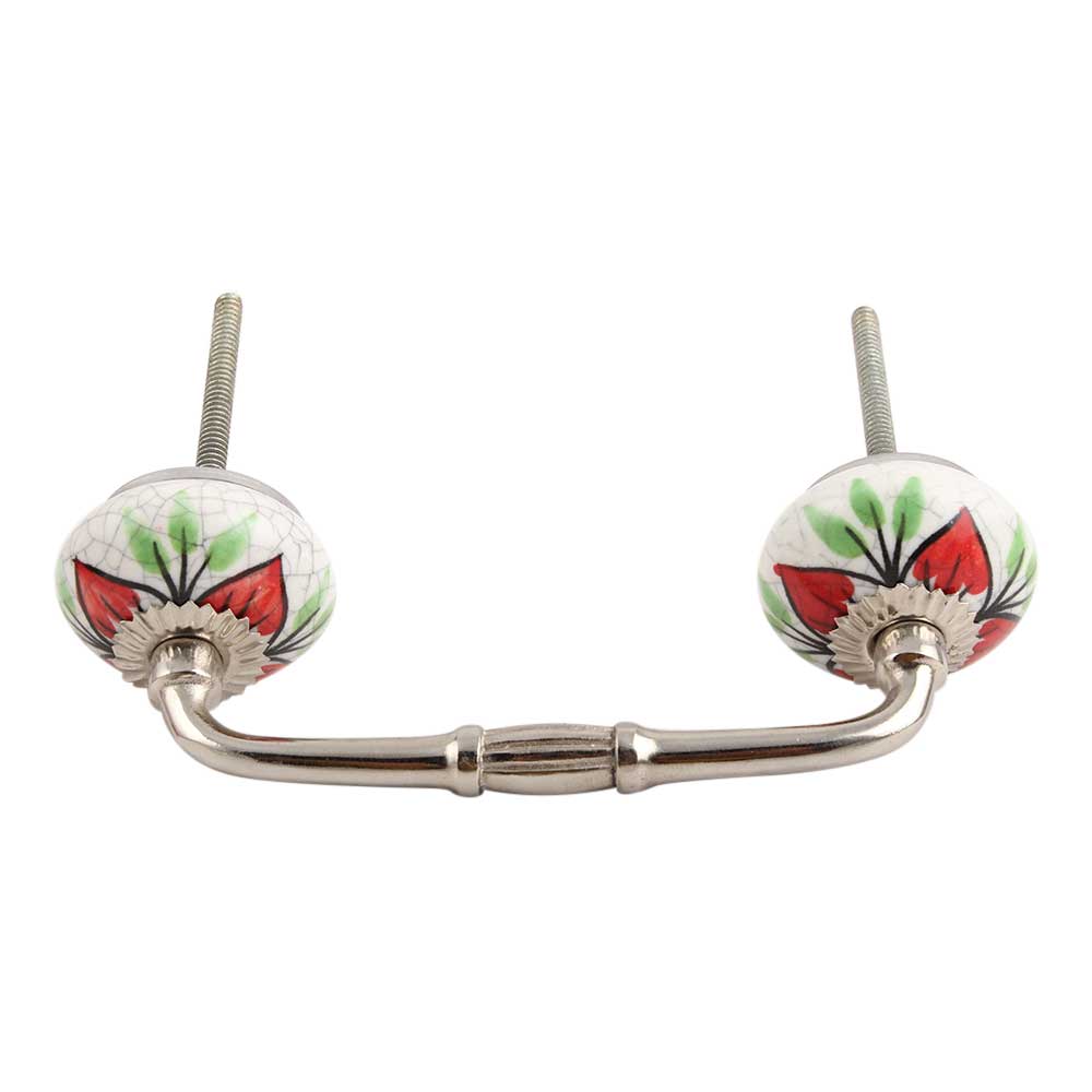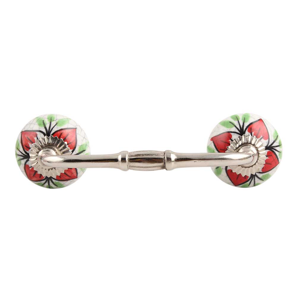 Red Flower Crackle Ceramic Bridge Handle. Ideal for Drawer, Dresser, Cabinet, Wardrobe, Cupboard and Almirah.