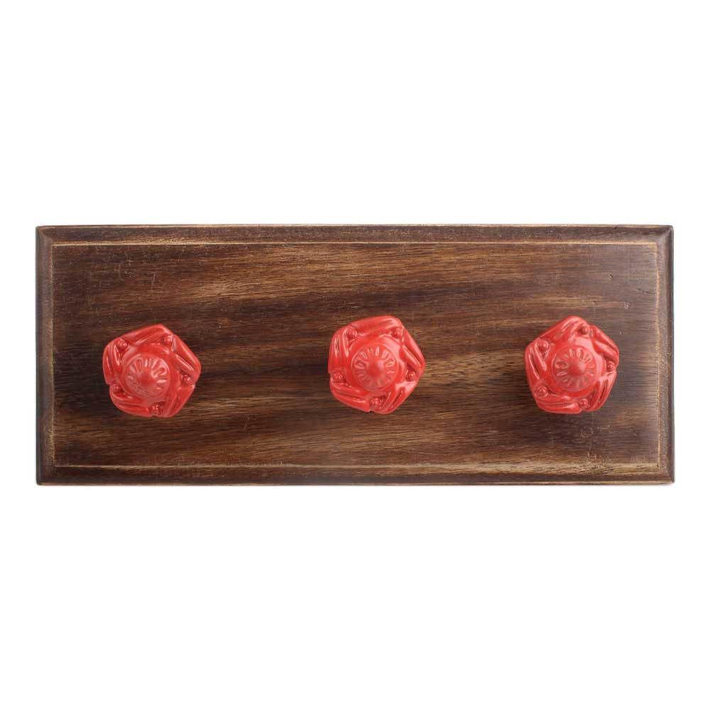 Red Flower Metal Wooden Hook. A Perfect Complement to the Soft Tone of the Wood are these White Traditional Hat & Coat Hook Made of Genuine Porcelain and Brass. It can be use to Hang Jewellery, Leashes, Towels, Scarves, Light Weight Sweaters, Caps Etc.