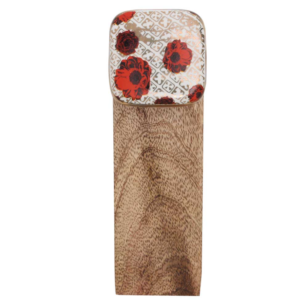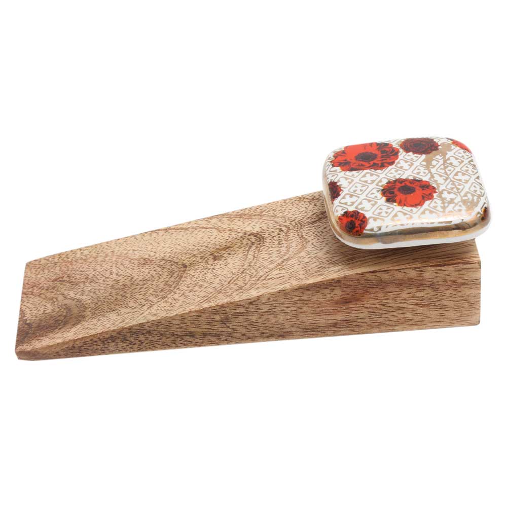 Handmade Ceramic Wooden Door Stopper.Wooden Door Stopper with a Ceramic Knob to Carry it Easily. This Wooden Door Stopper has Glue Dots under it to Ensure that it does not Slip. It is Handmade by the Craftsmen of India and this Innovative Door Stopper won't Disappoint You.
