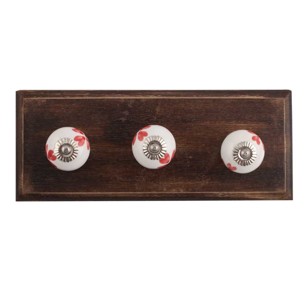 Red Heart Ceramic Wooden Hook. A Perfect Complement to the Soft Tone of the Wood are these White Traditional Hat & Coat Hook Made of Genuine Porcelain and Brass. It can be use to Hang Jewellery, Leashes, Towels, Scarves, Light Weight Sweaters, Caps Etc.