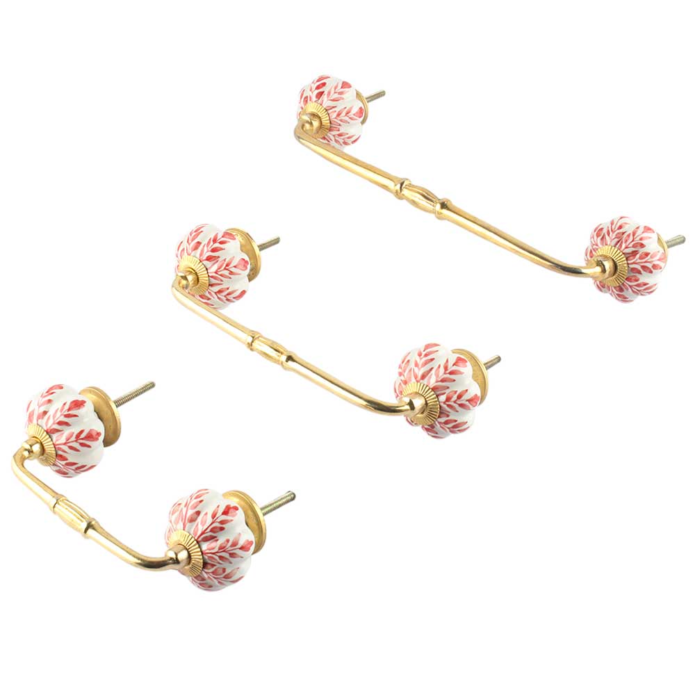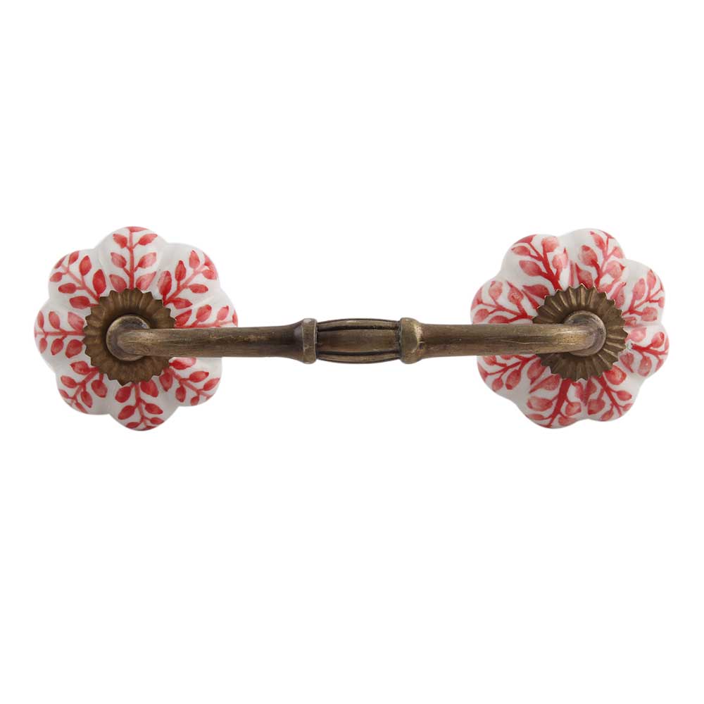 Red Leaf Ceramic Bridge Handle. Ideal for Drawer, Dresser, Cabinet, Wardrobe, Cupboard and Almirah.