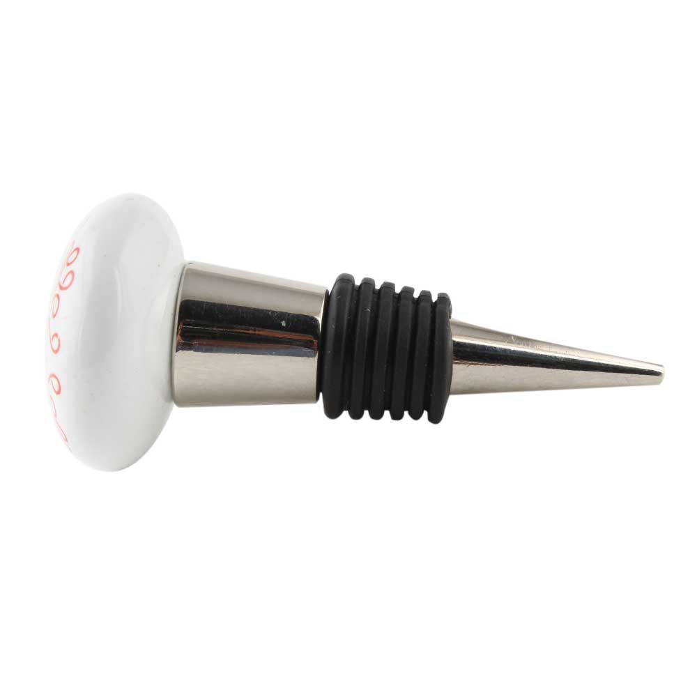 Red Leaf Flat Ceramic Wine Bottle Stopper. Zinc Alloy Wine Bottle Stopper with Attractive Jute Bag Packaging.