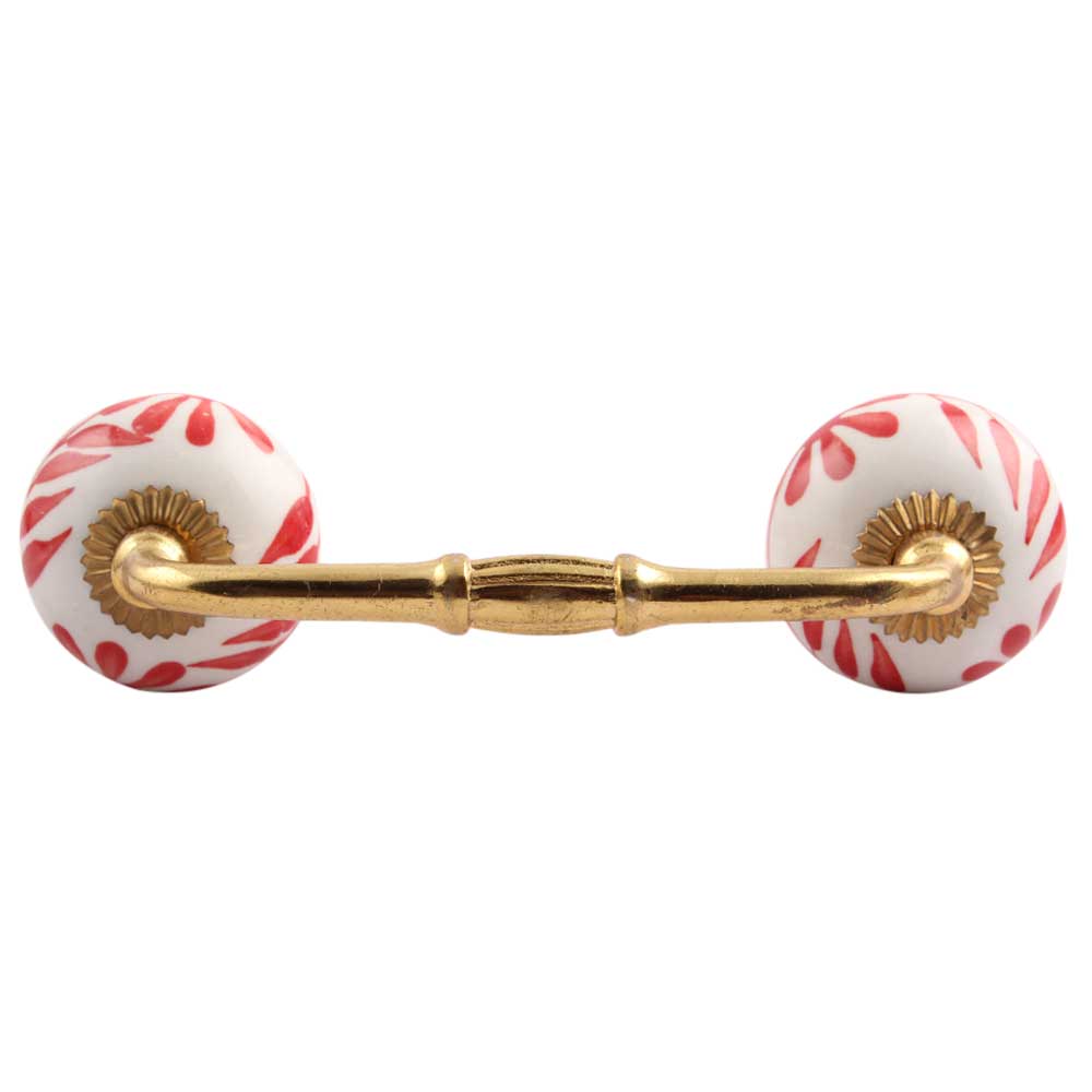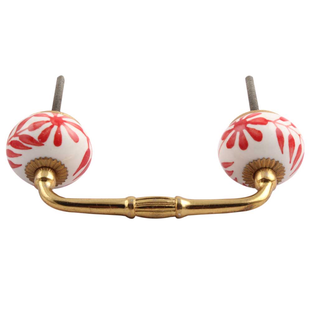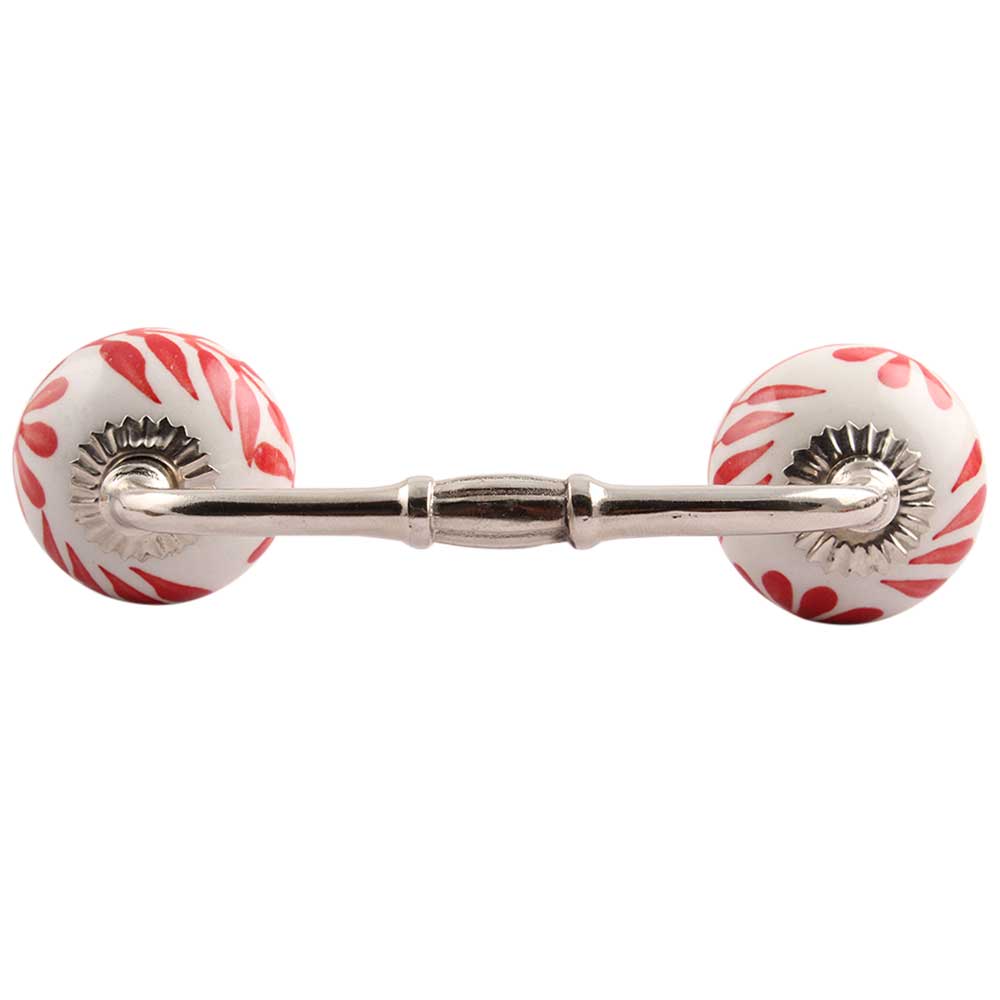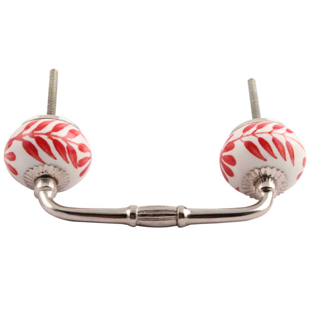 Red Leaf Floral Ceramic Bridge Handle. Ideal for Drawer, Dresser, Cabinet, Wardrobe, Cupboard and Almirah.
