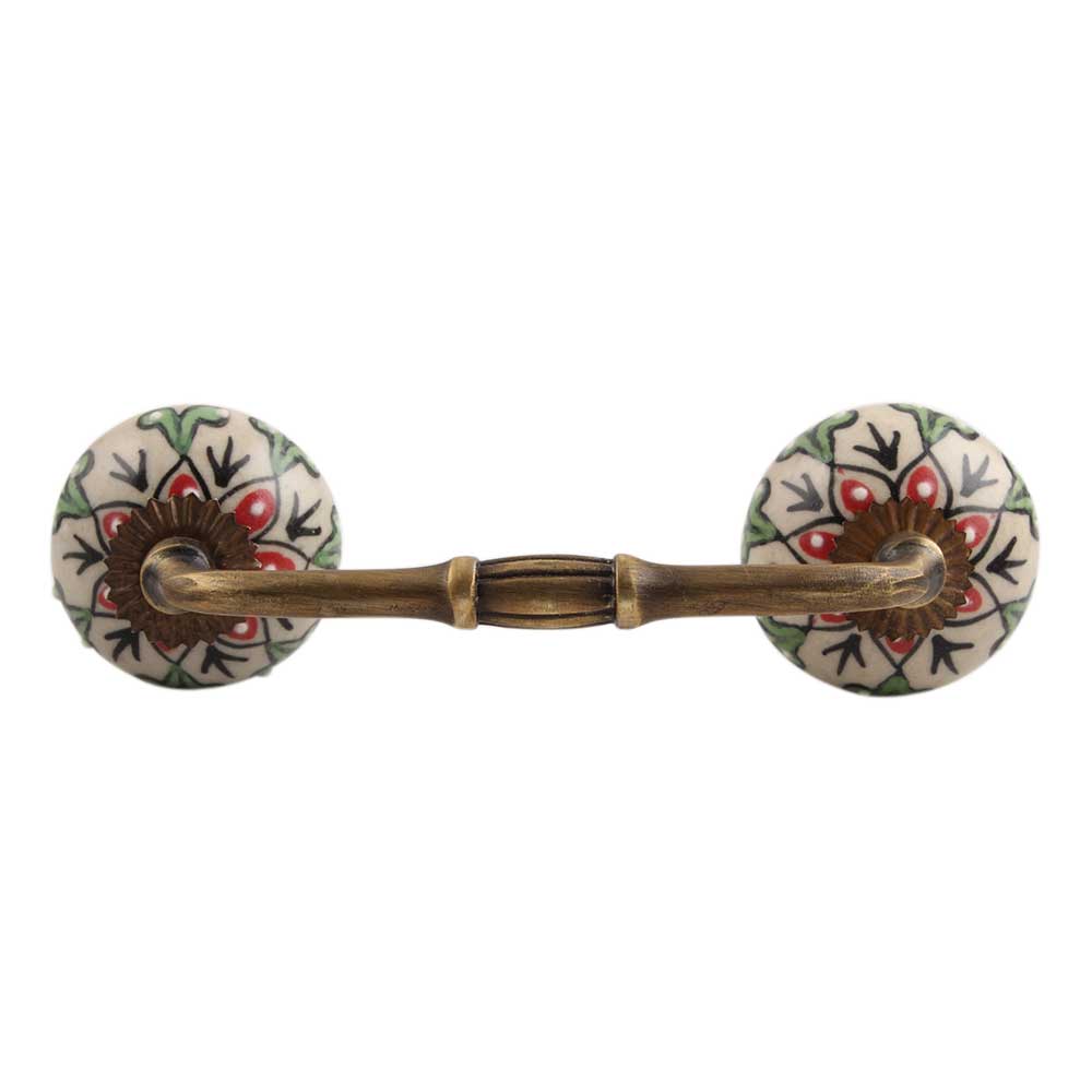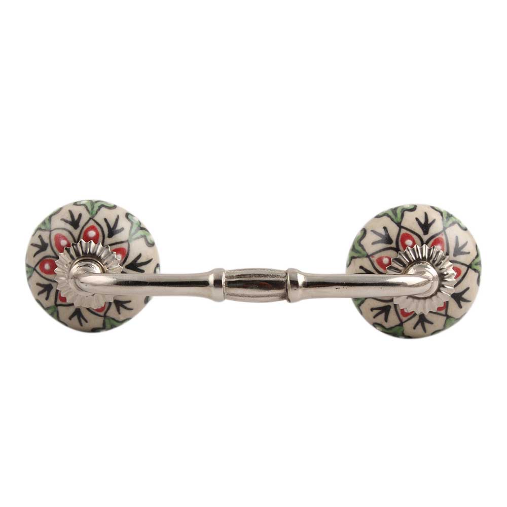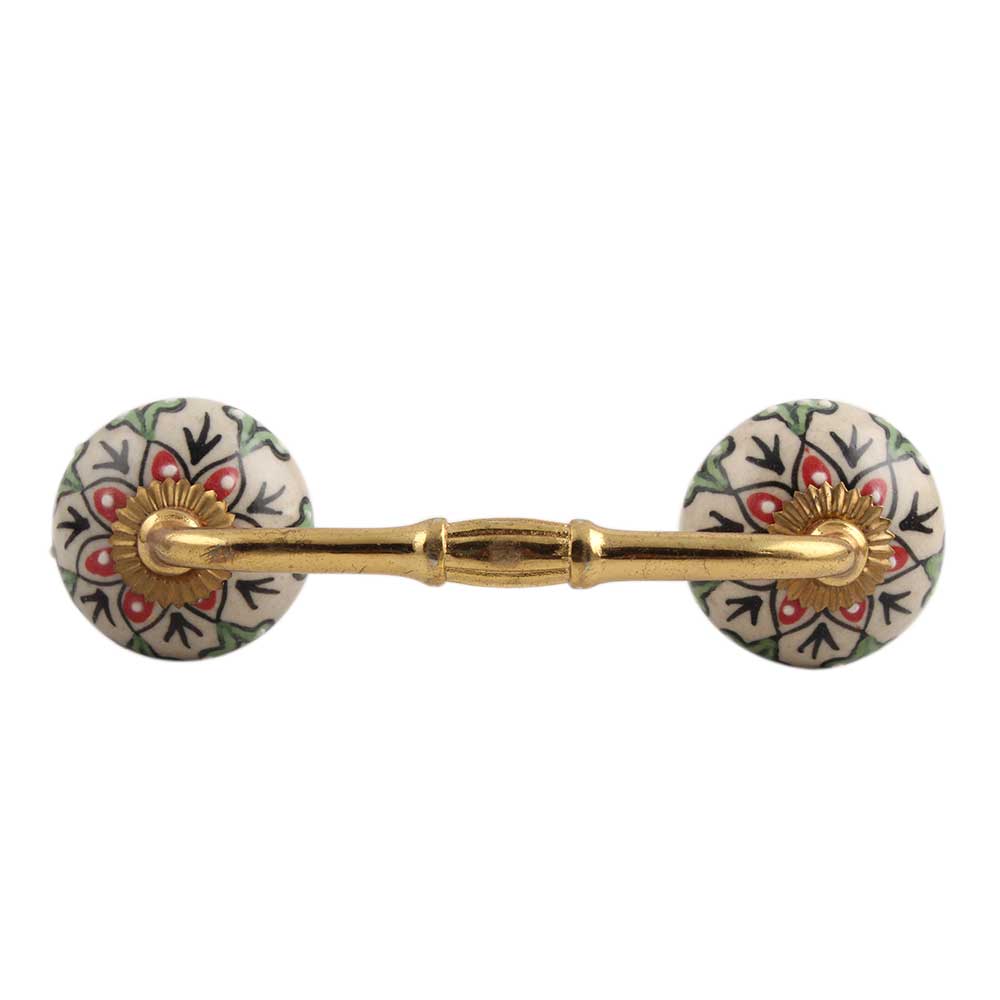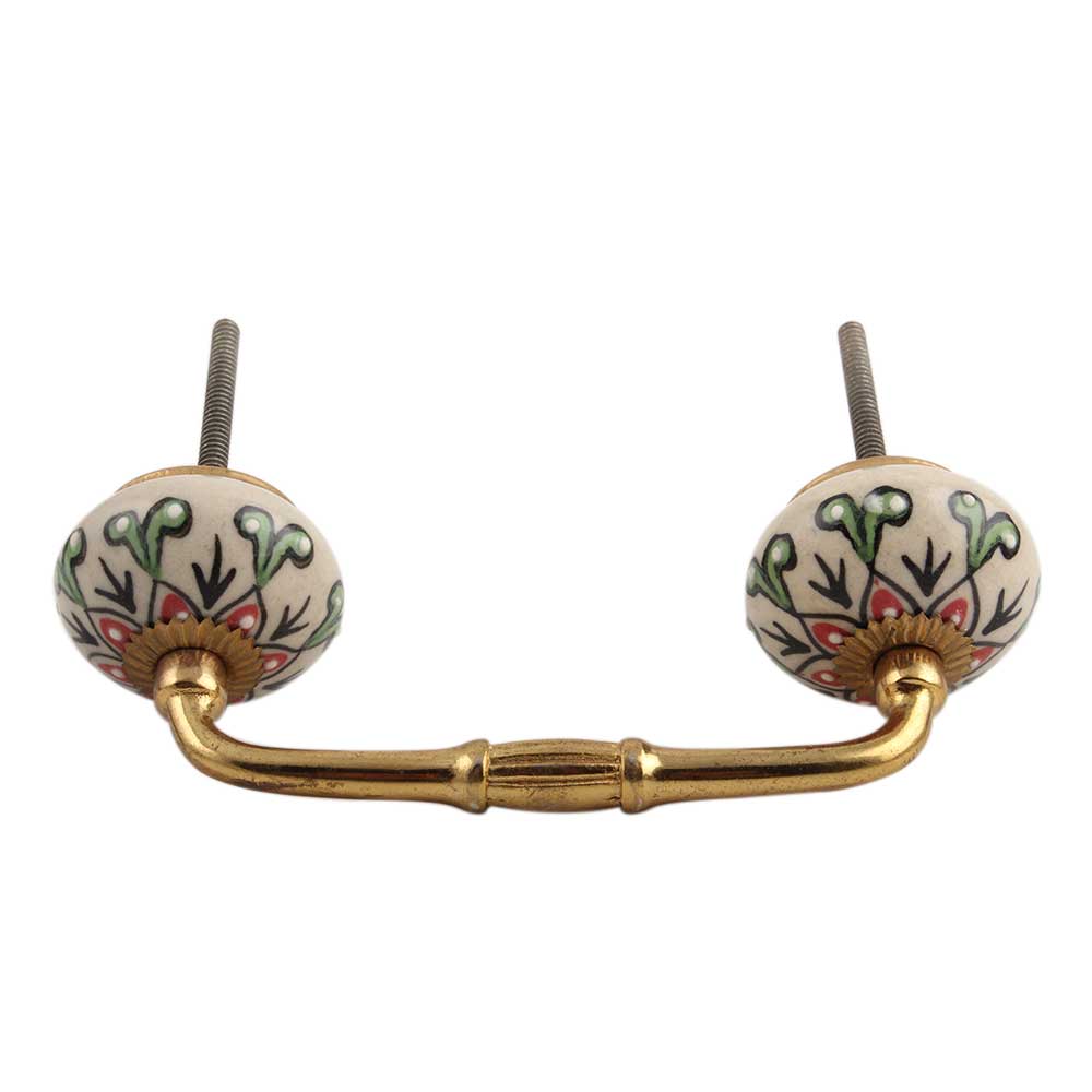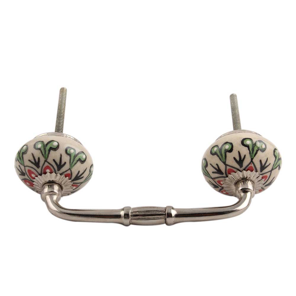 Red Leaf Flower Ceramic Bridge Handle. Ideal for Drawer, Dresser, Cabinet, Wardrobe, Cupboard and Almirah.