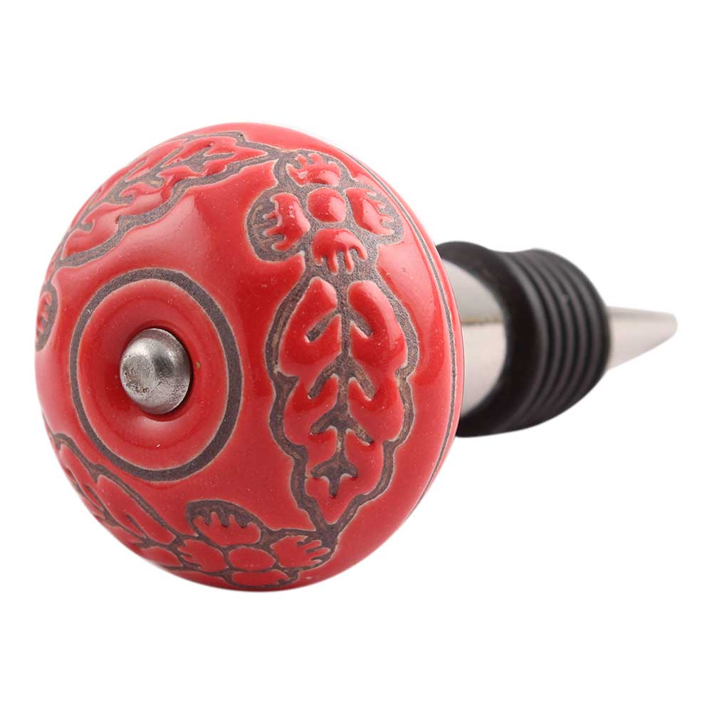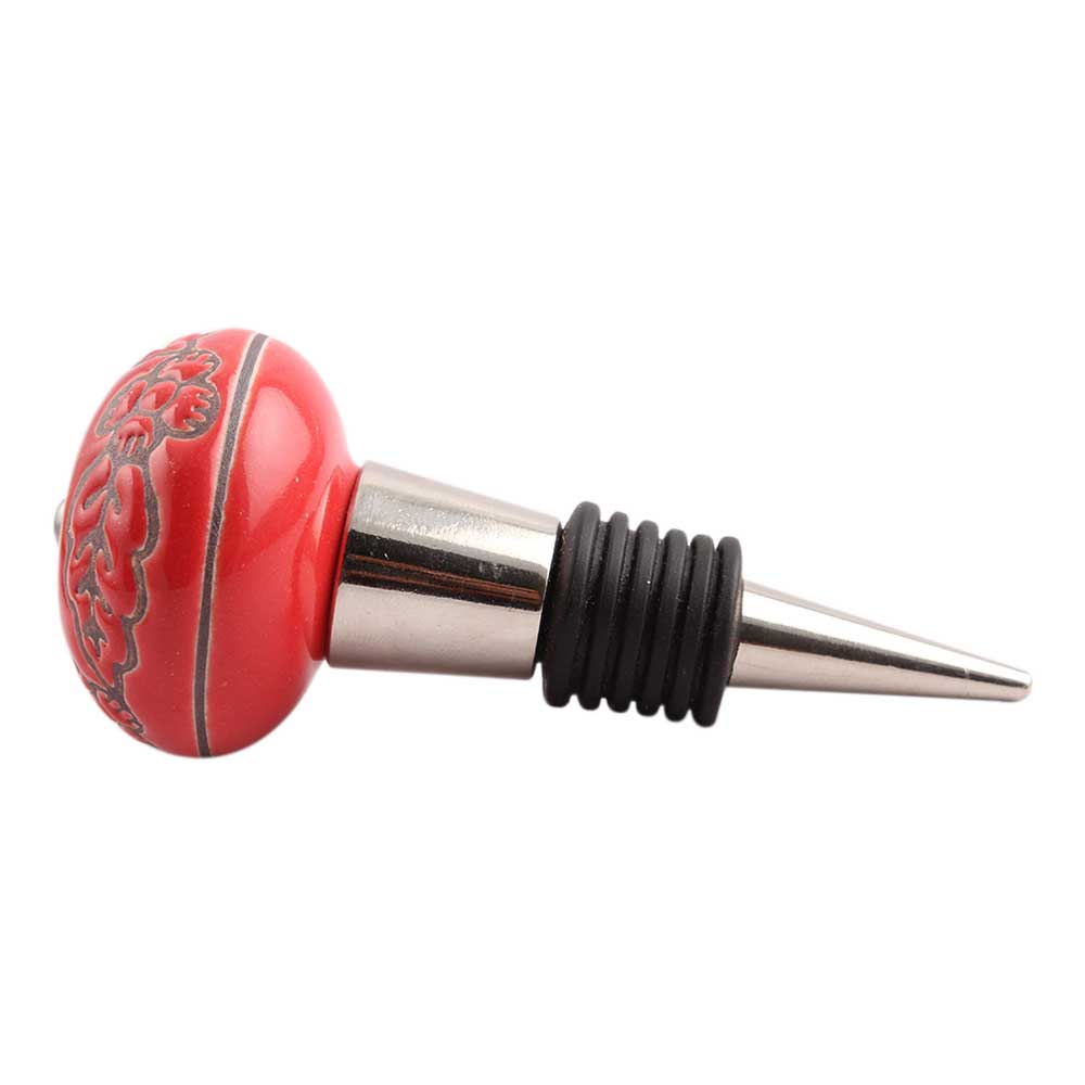 Red Leaf Flower Etched Ceramic Wine Stopper.zinc alloy wine bottle stopper with attractive Jute Bag Packaging.