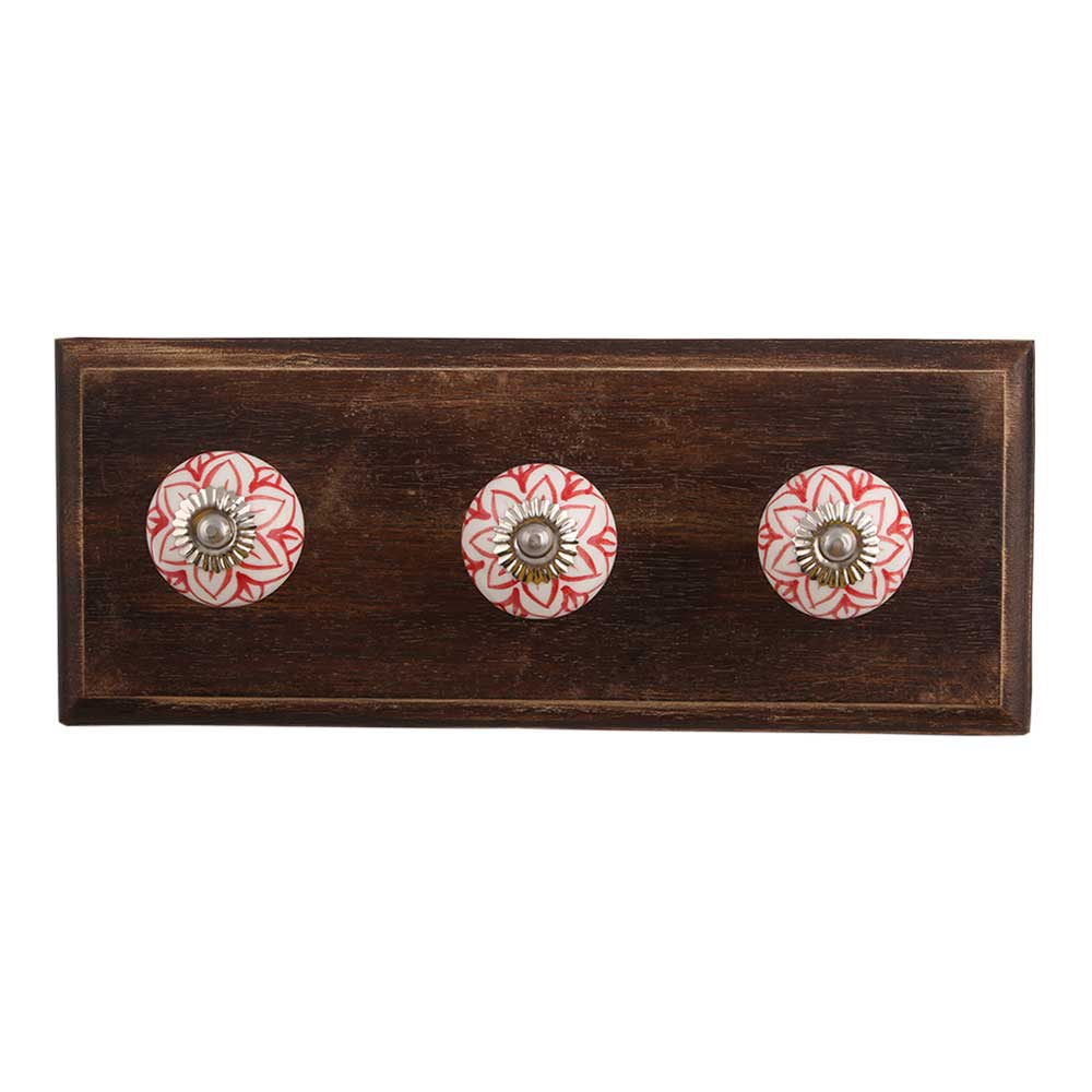 Red Lotus Ceramic Wooden Hook. A Perfect Complement to the Soft Tone of the Wood are these White Traditional Hat & Coat Hook Made of Genuine Porcelain and Brass. It can be use to Hang Jewellery, Leashes, Towels, Scarves, Light Weight Sweaters, Caps Etc.