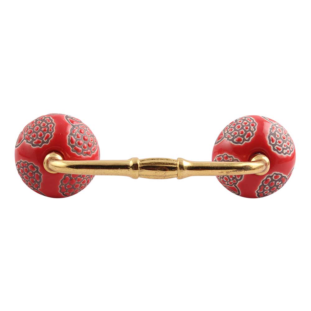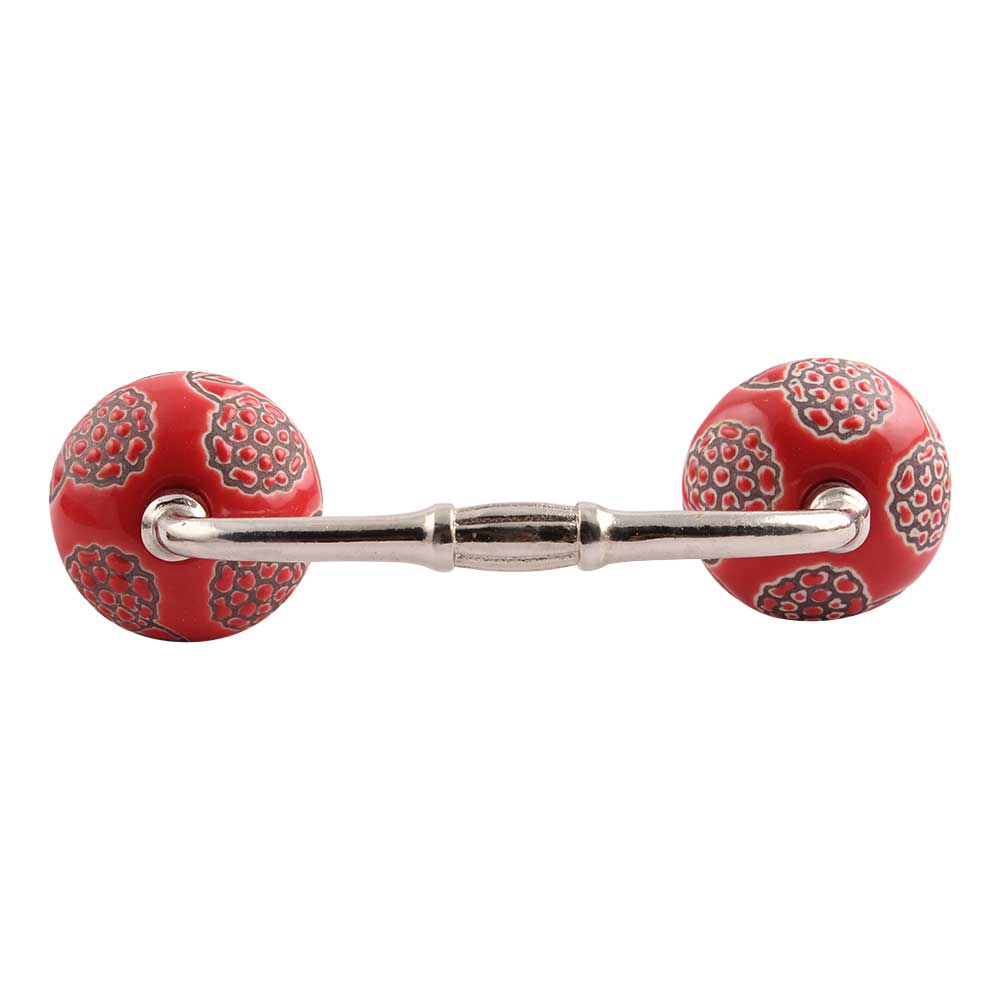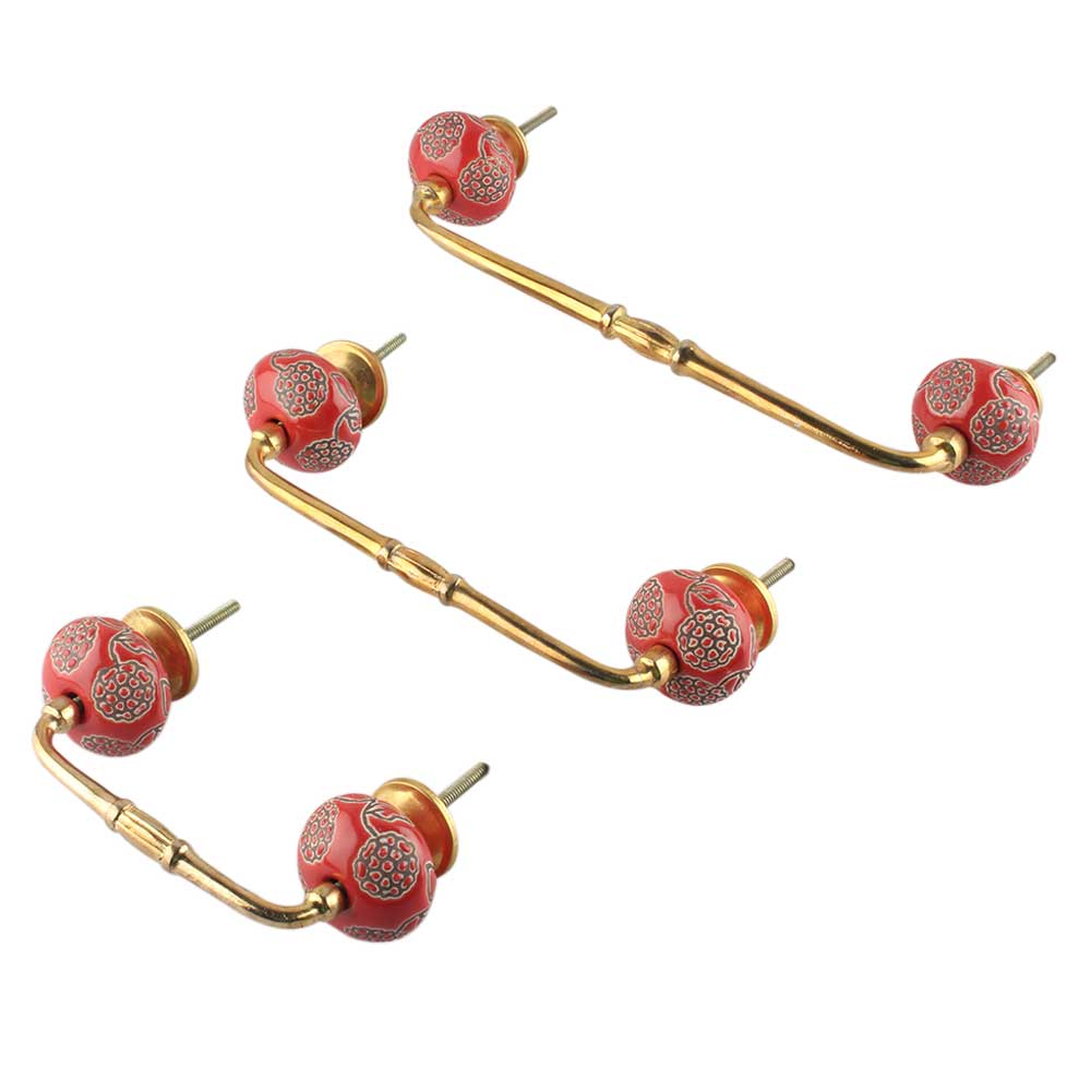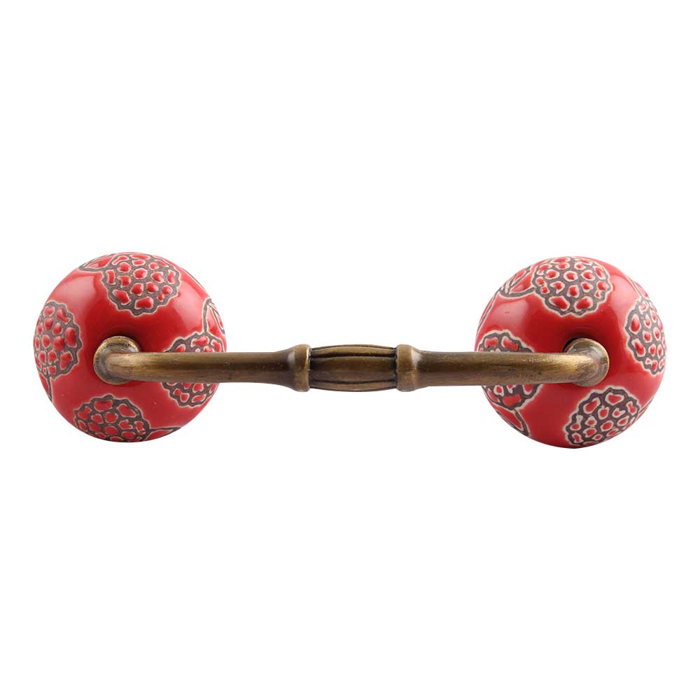 Red Marigold Etched Ceramic Bridge Handle. Ideal for Drawer, Dresser, Cabinet, Wardrobe, Cupboard and Almirah.