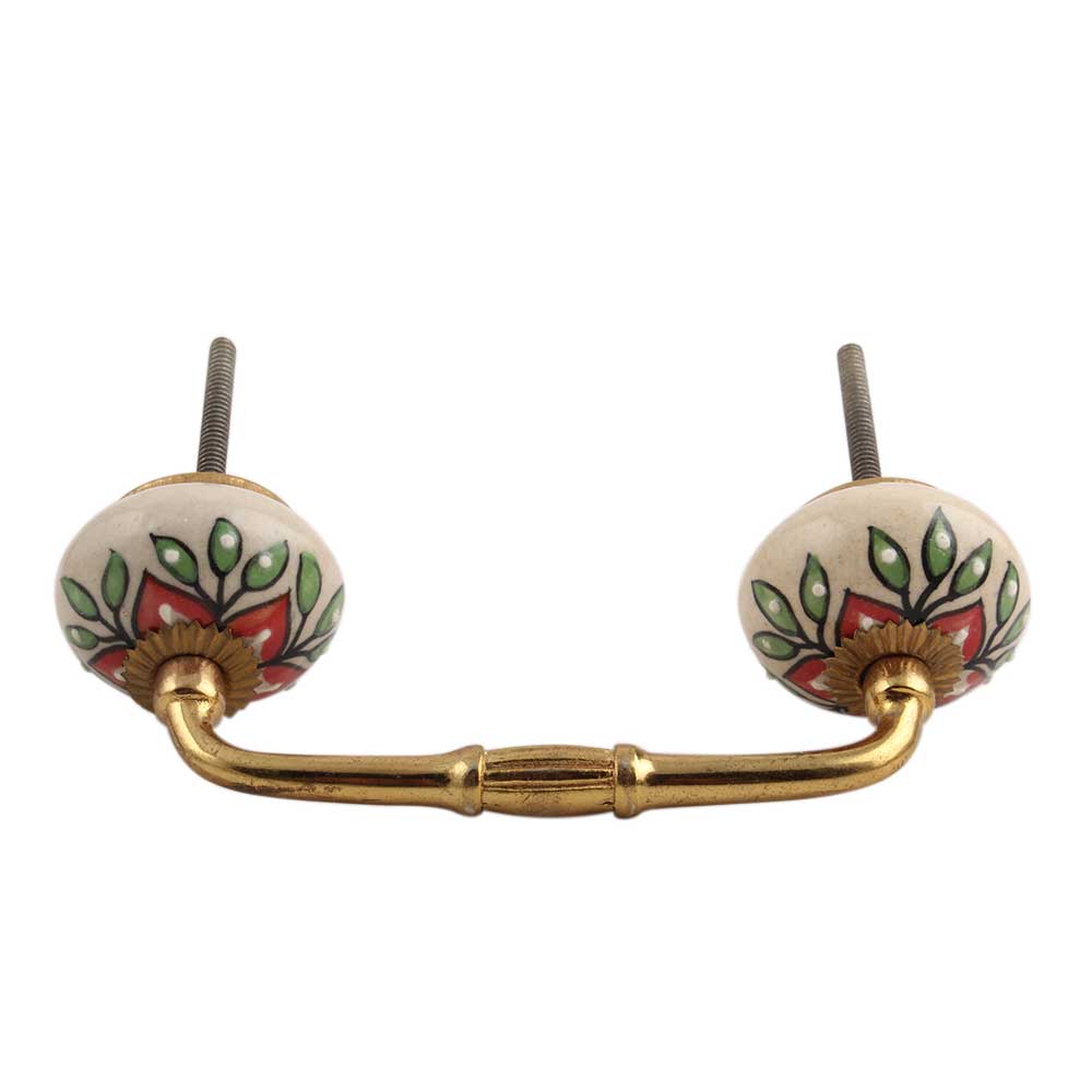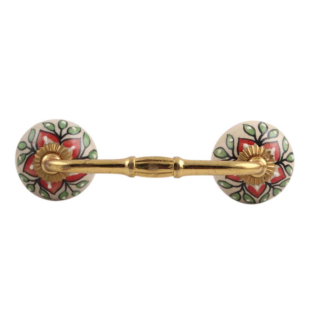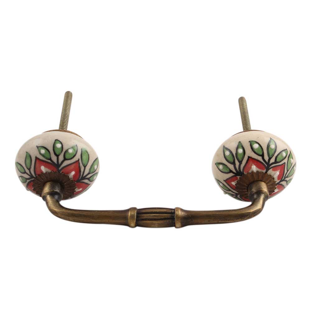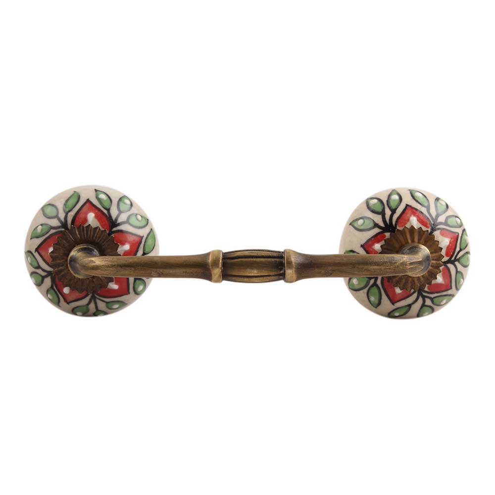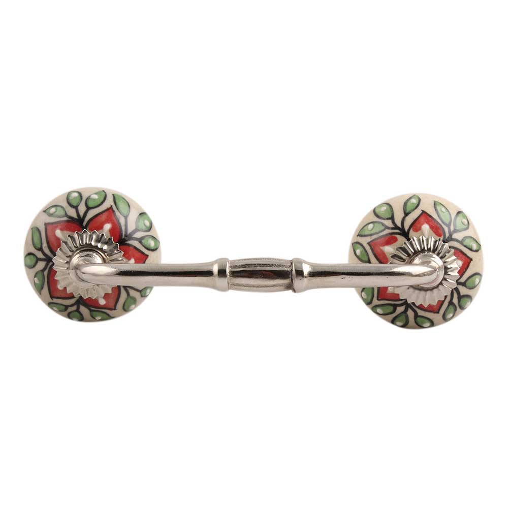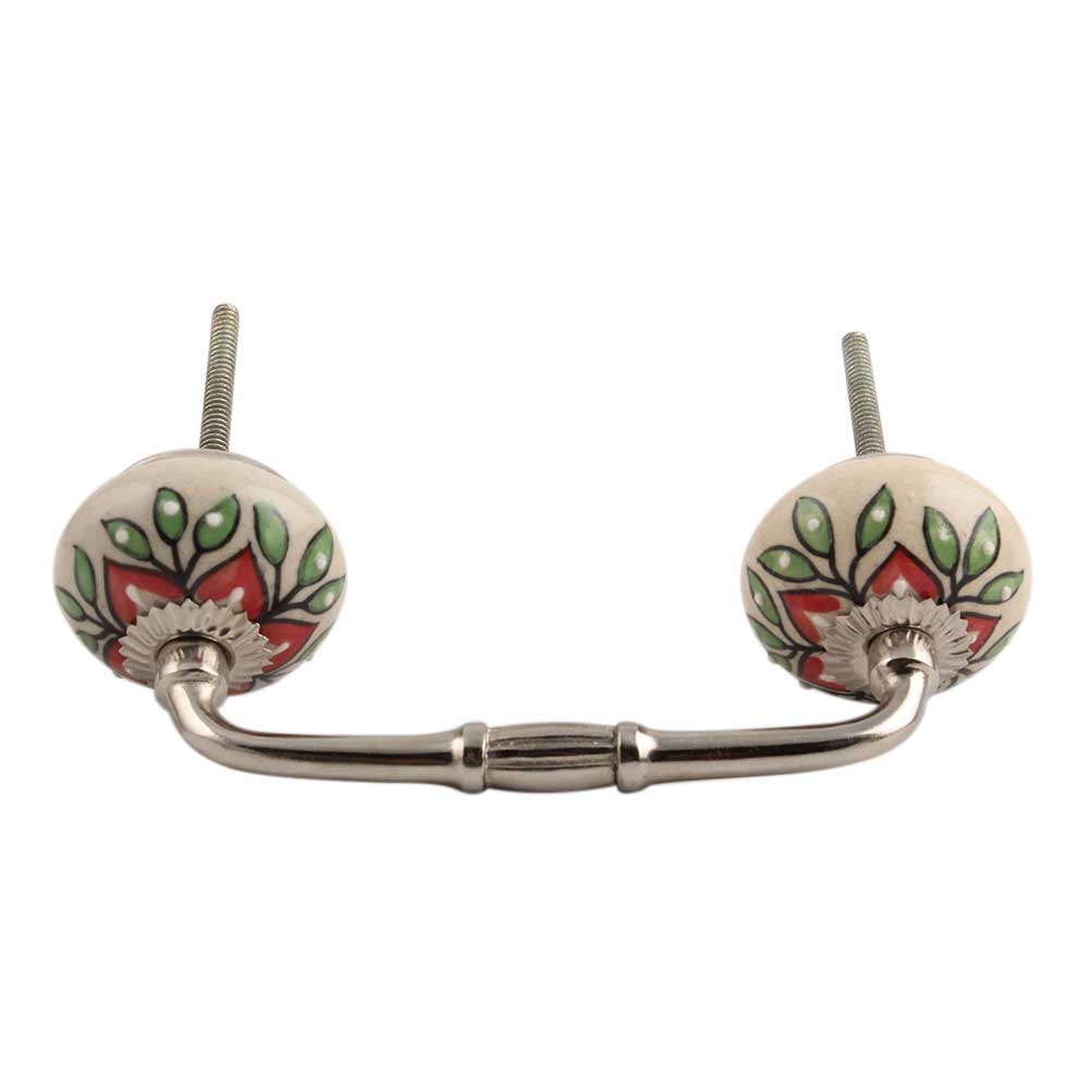 Red Poinsettia Flower Ceramic Bridge Handle. Ideal for Drawer, Dresser, Cabinet, Wardrobe, Cupboard and Almirah.
