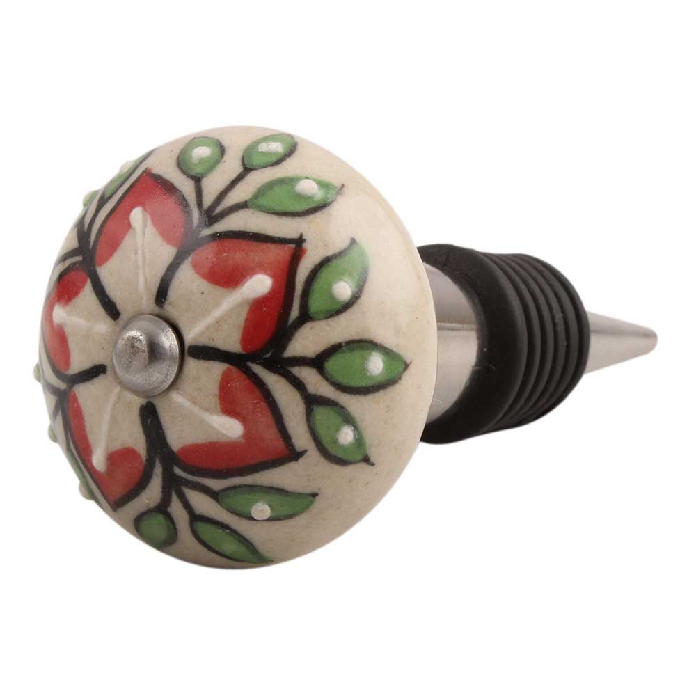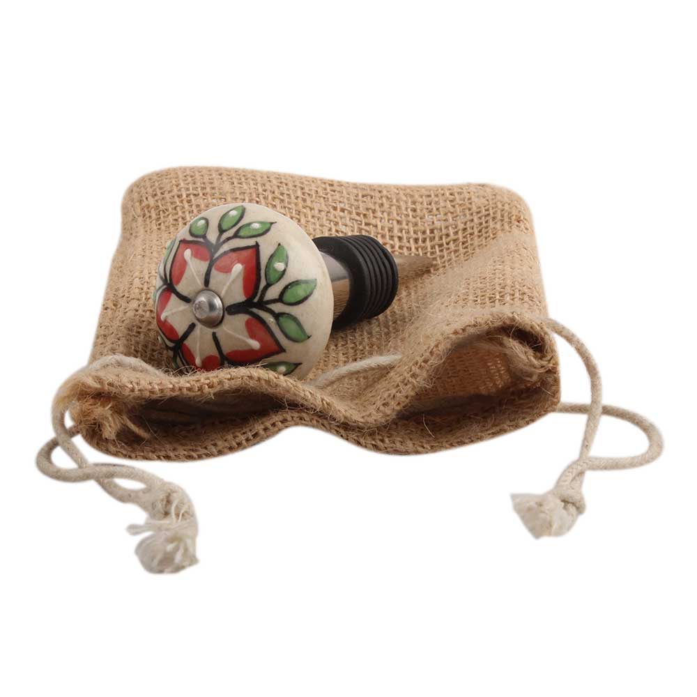 Red Poinsettia Flower Ceramic Wine Stopper.zinc alloy wine bottle stopper with attractive Jute Bag Packaging.