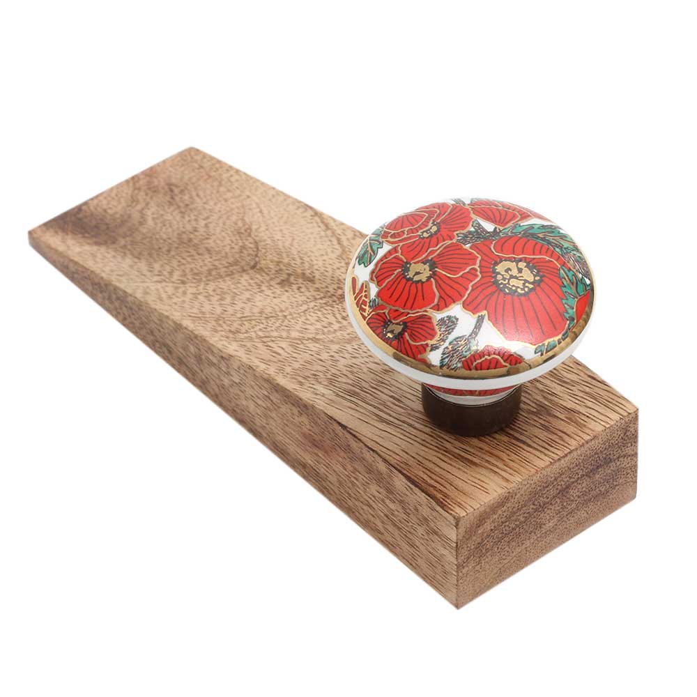 Handmade Ceramic Wooden Door Stopper.Wooden Door Stopper with a Ceramic Knob to Carry it Easily. This Wooden Door Stopper has Glue Dots under it to Ensure that it does not Slip. It is Handmade by the Craftsmen of India and this Innovative Door Stopper won't Disappoint You.