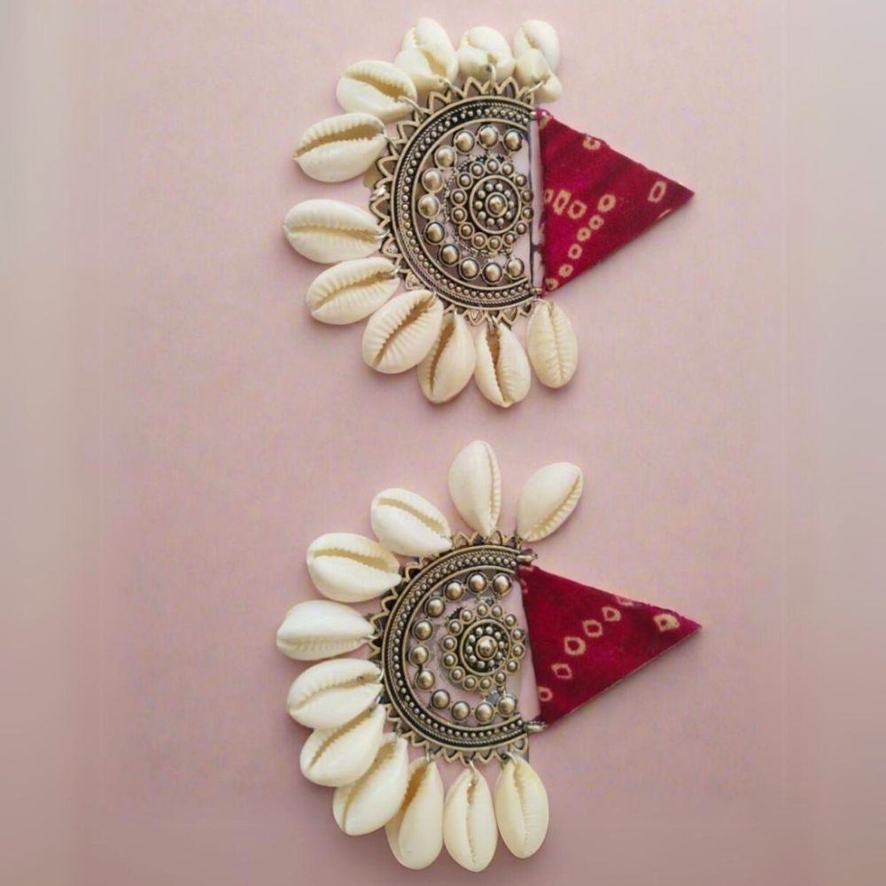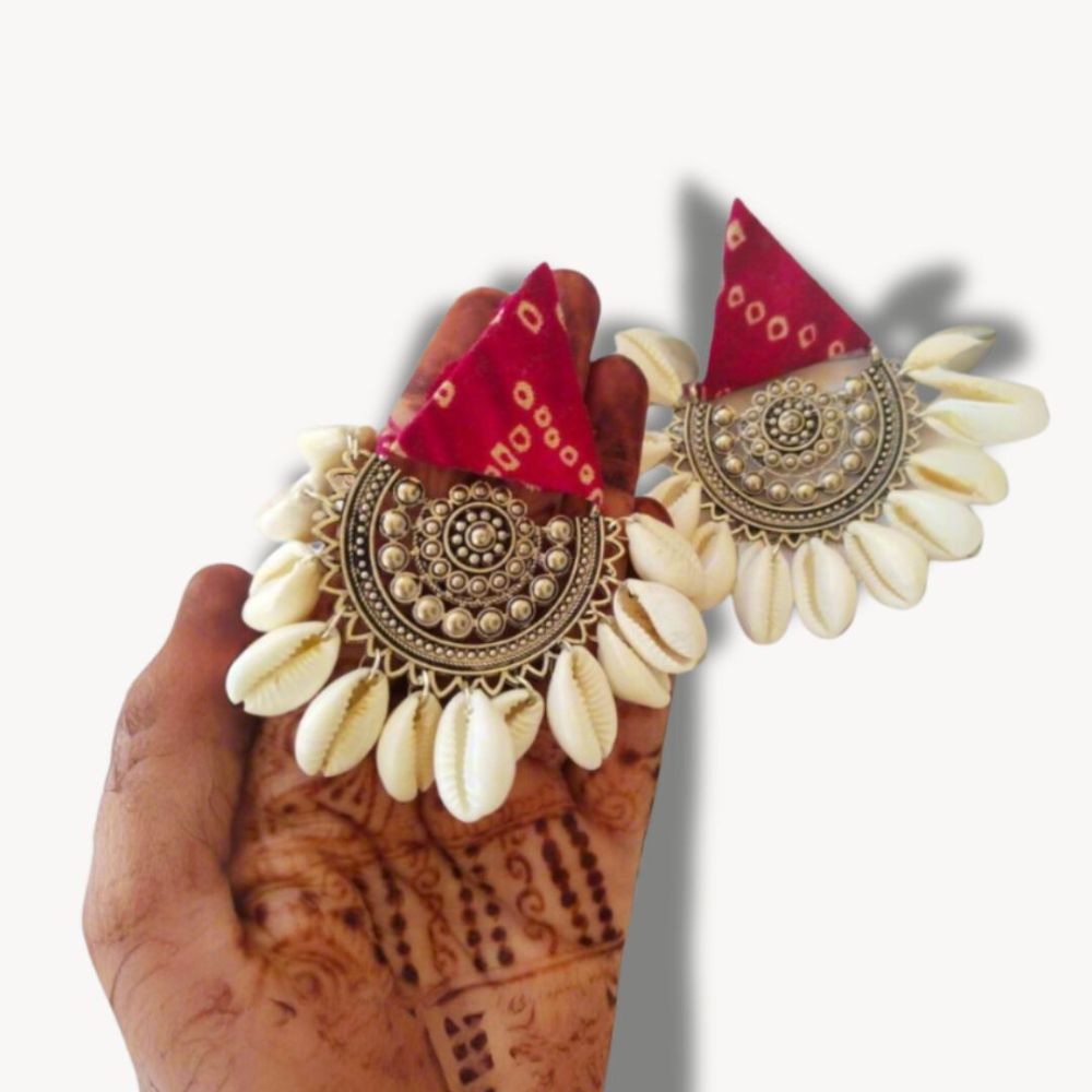 The Red Printed Fabric Earrings with Shells are a lively expression of handcrafted Indian jewellery inspired by nature and tradition. Crafted on a fabric base, the rich red tone is enhanced with delicate printed patterns that add texture and warmth. Finished with white shell accents, the earrings bring an organic, coastal touch that feels fresh and celebratory. Lightweight and expressive, they are designed for comfortable wear across festive and everyday occasions.