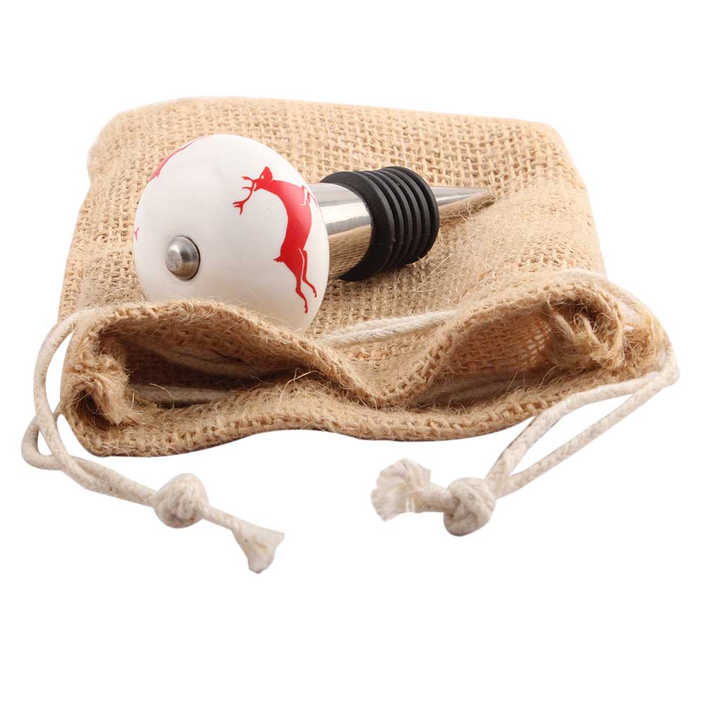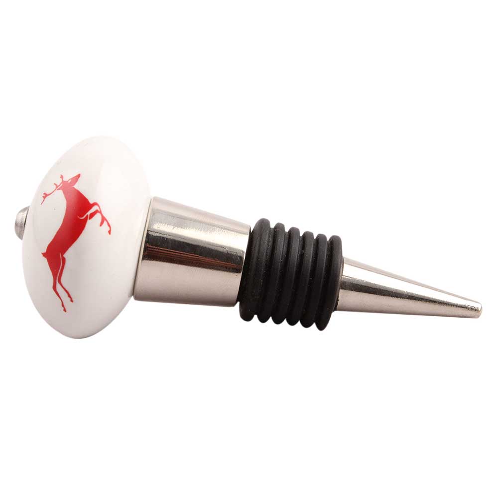 Red Runing Rein Deer Pattern Ceramic Wine Stopper.zinc alloy wine bottle stopper.