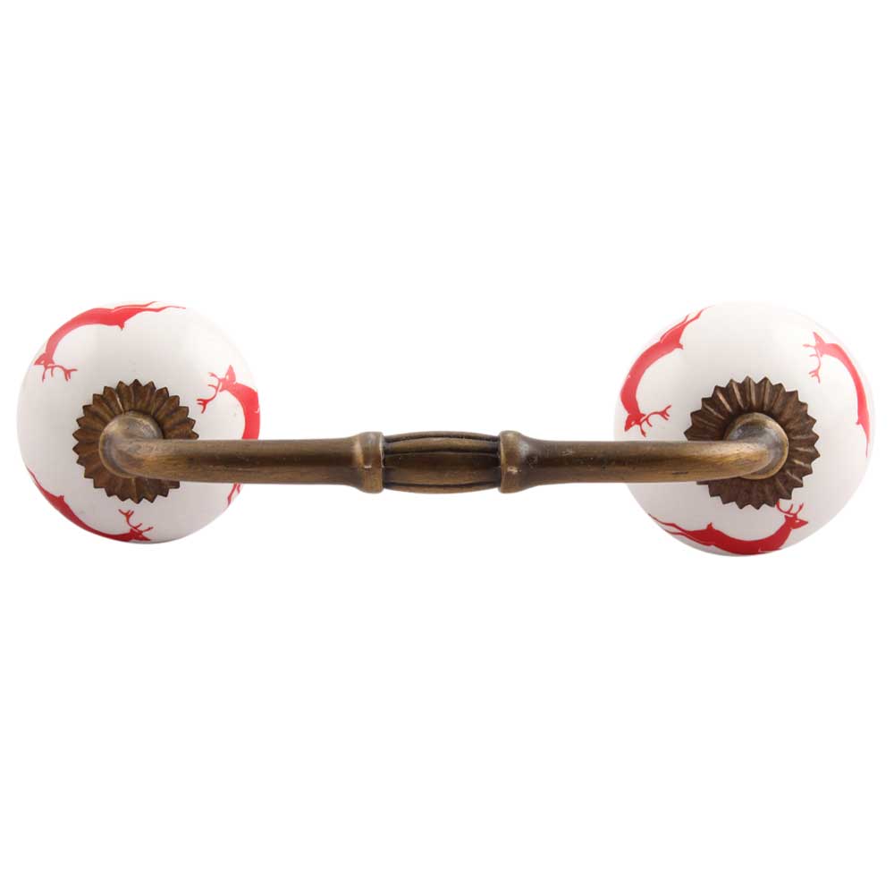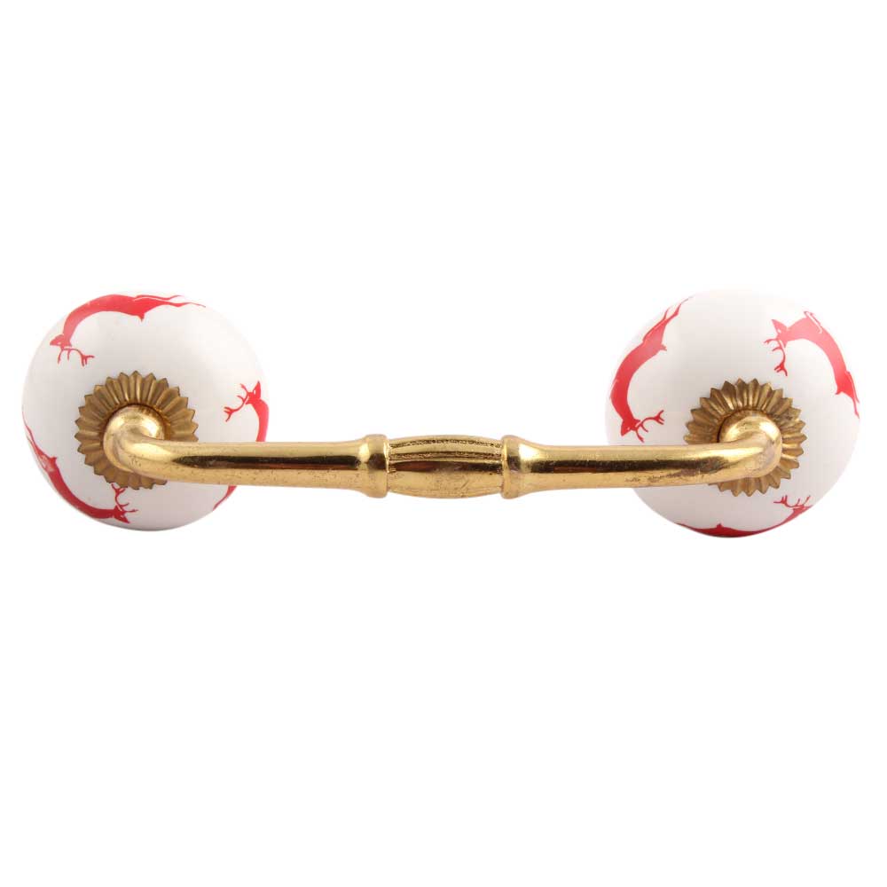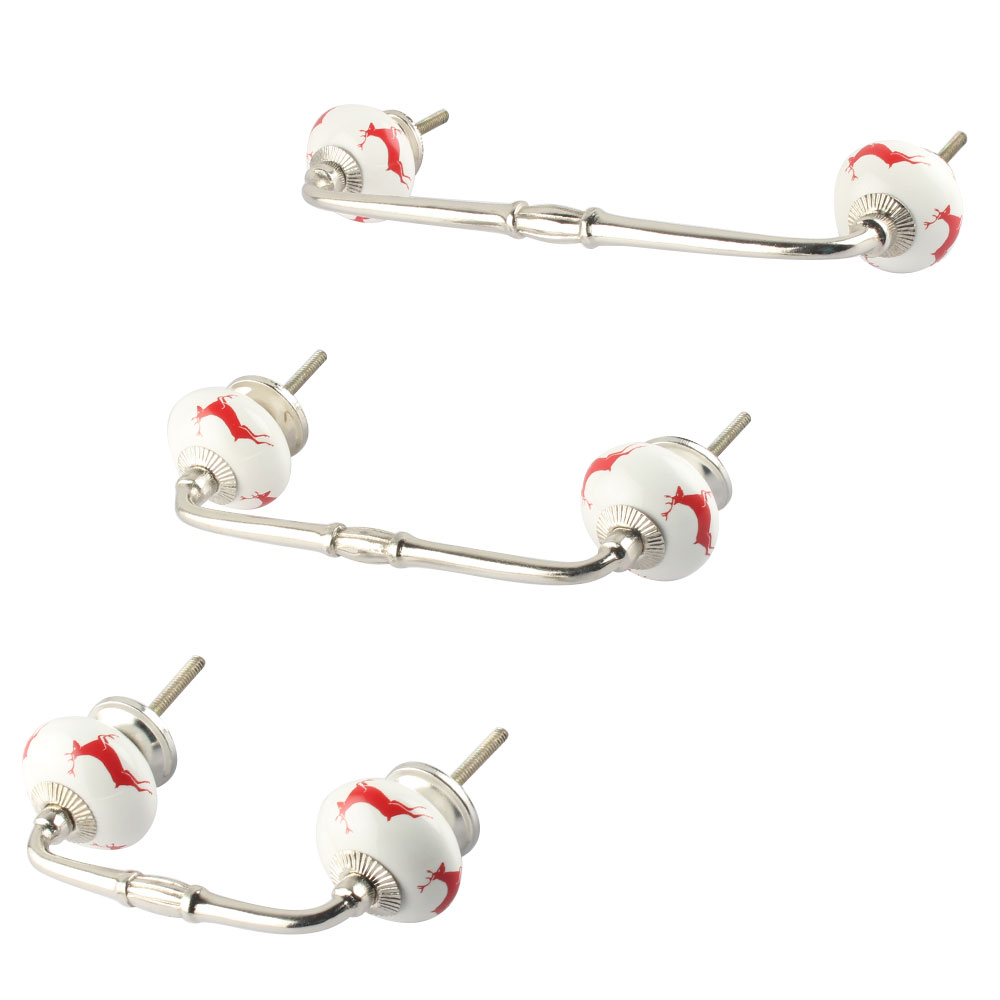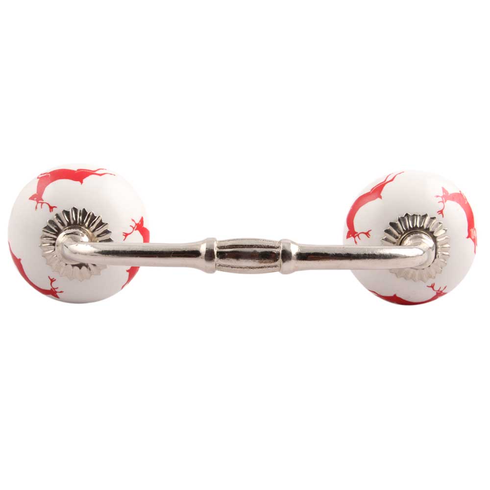 Red Running Rein Deer Pattern Ceramic Bridge Handle. Ideal for Drawer, Dresser, Cabinet, Wardrobe, Cupboard and Almirah.
